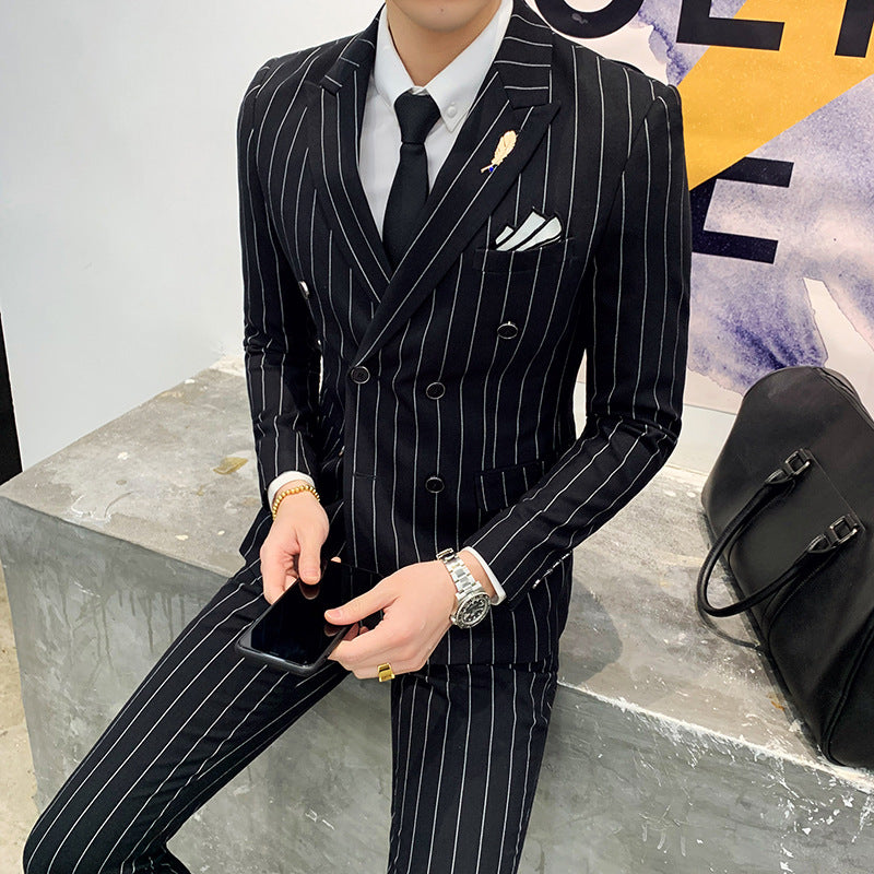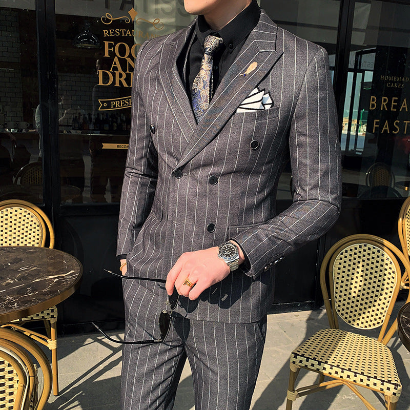 Double Brewed Seersucker Suit Casual Striped Suit for Men