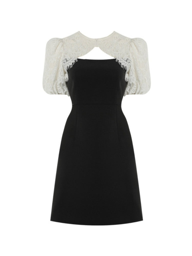 Black and White Dress French Retro Black and White Decorative Stitching Lace Short Sleeve Dress Hepburn Black Dress