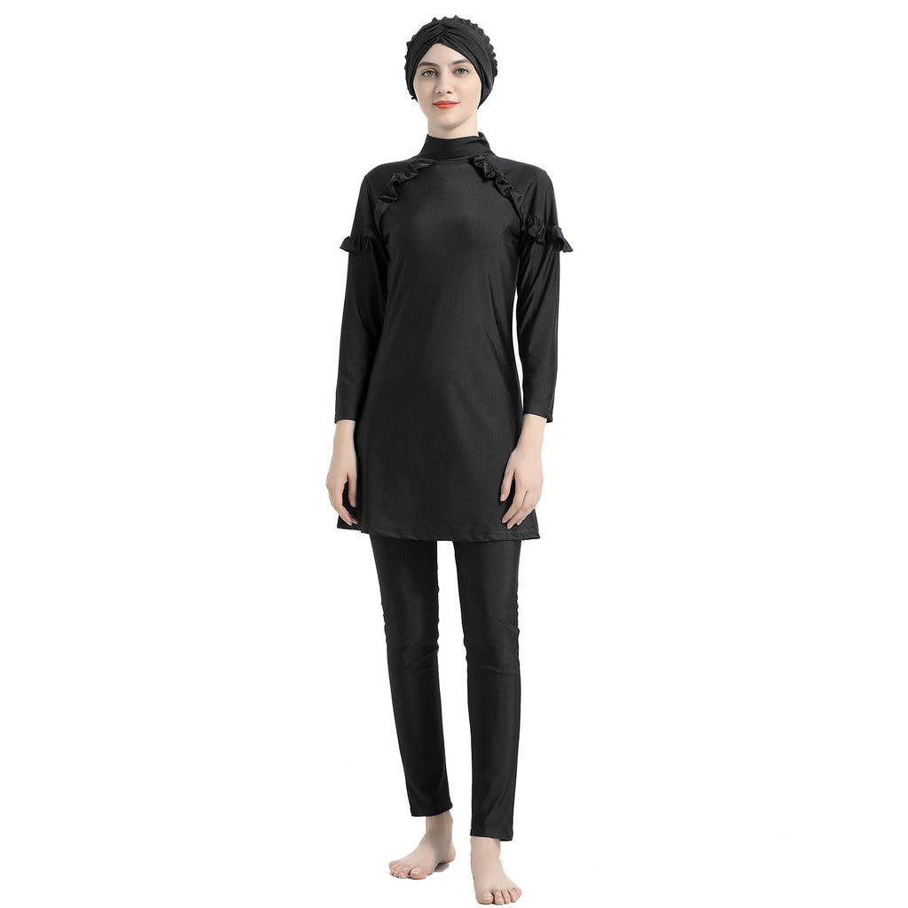 Burkini Muslim Swimwear Solid Color Slim Sun Protection Three-Piece Set Swimsuit