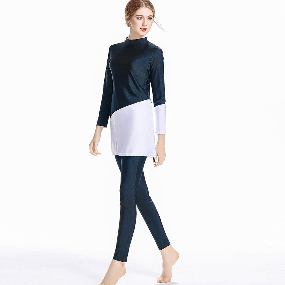 Burkini Muslim Swimwear Conservative Swimwear Color Block Beach Split Swimsuit Long Sleeve