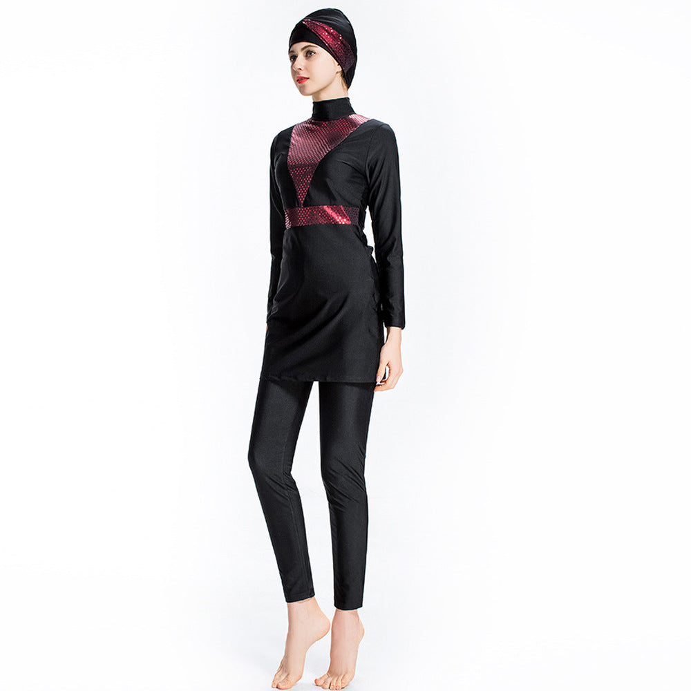 Burkini Muslim Swimwear Sequin Stitching Slim Three-Piece Split Beachwear