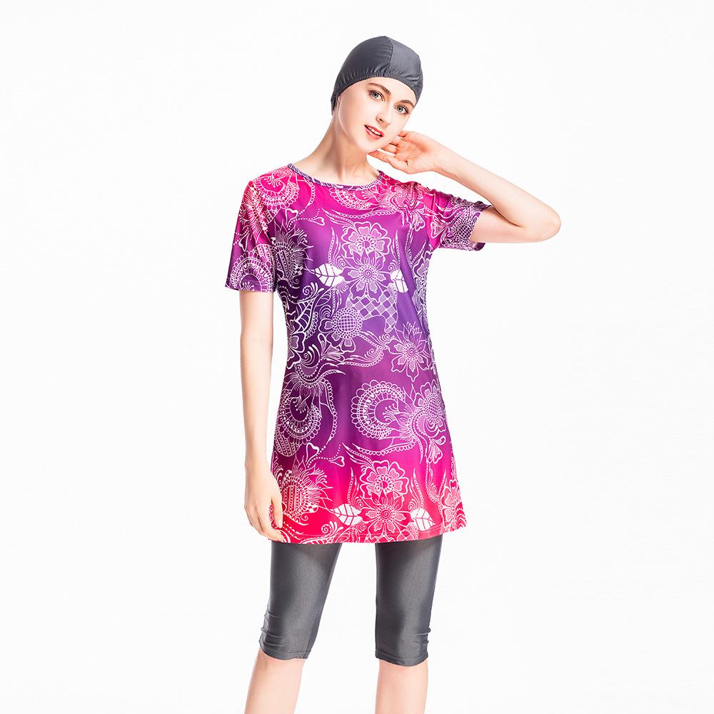 Burkini Muslim Swimwear Printed Short-Sleeved Swimsuit Conservative Cropped Swimsuit