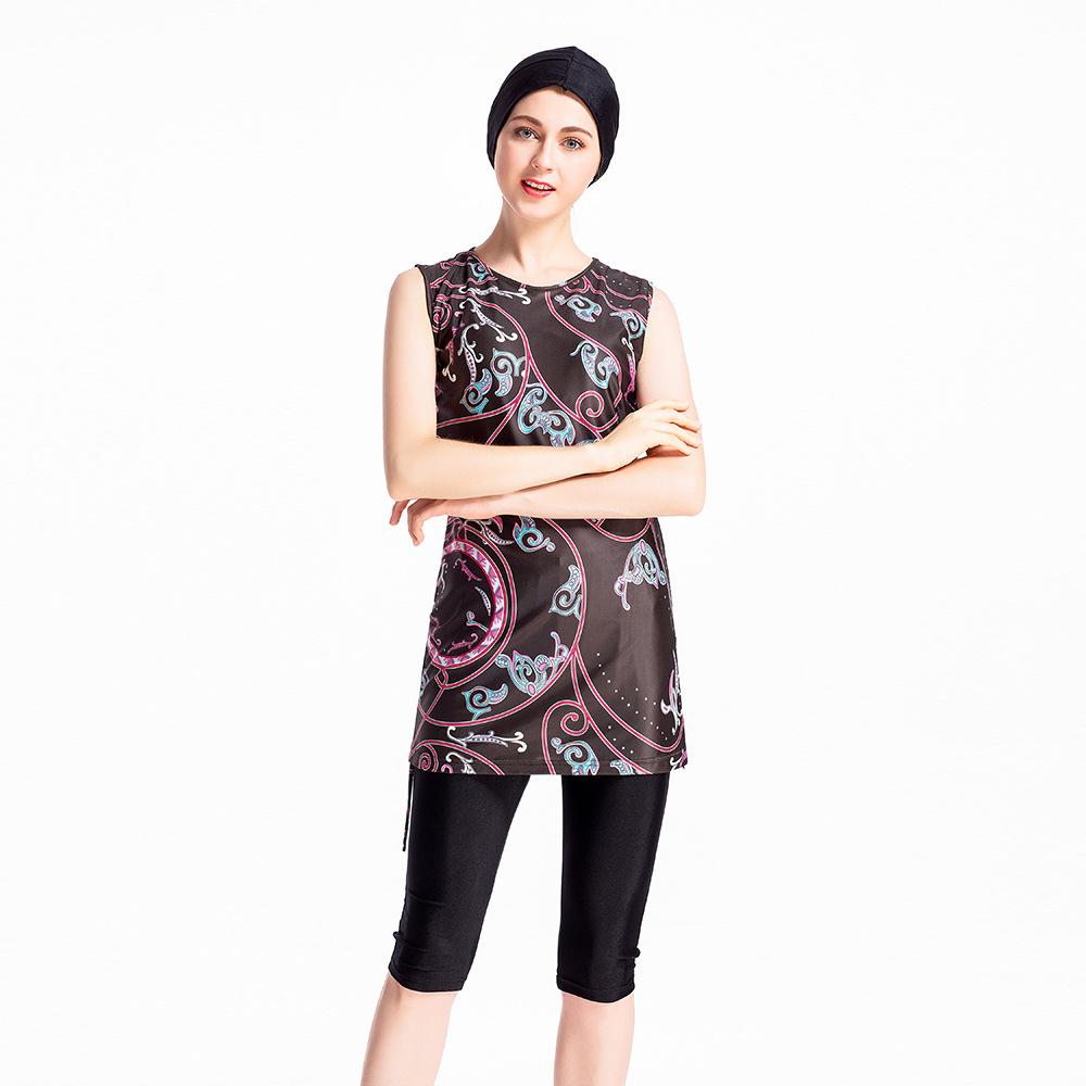 Burkini Muslim Swimwear Printed Sleeveless Swimsuit Conservative Swimwear