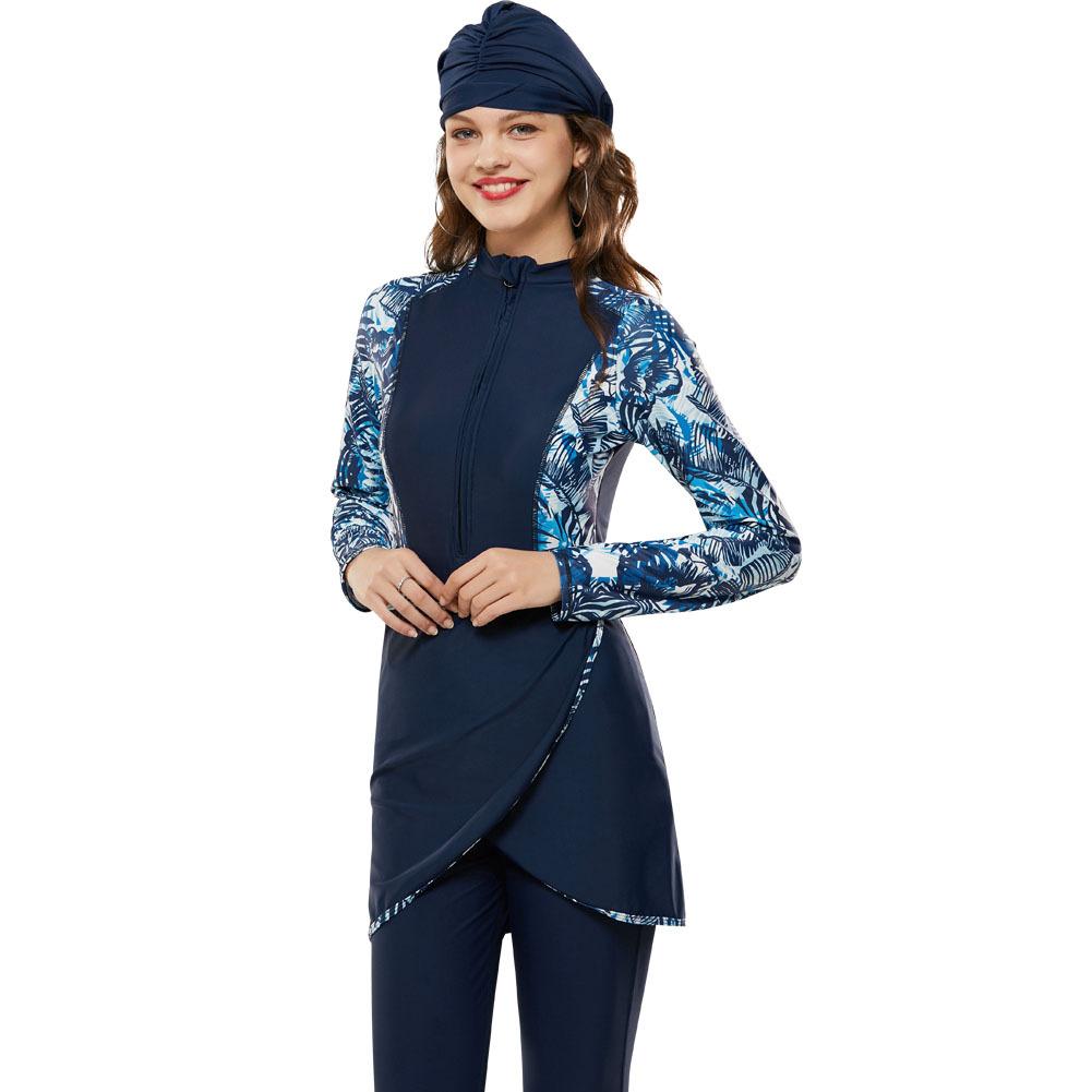 Burkini Swimwear Muslim Fashion Outfits Conservative Printed Slim Split Swimsuit Beachwear Women