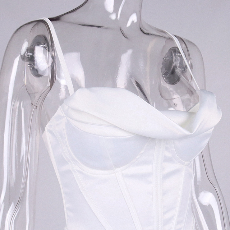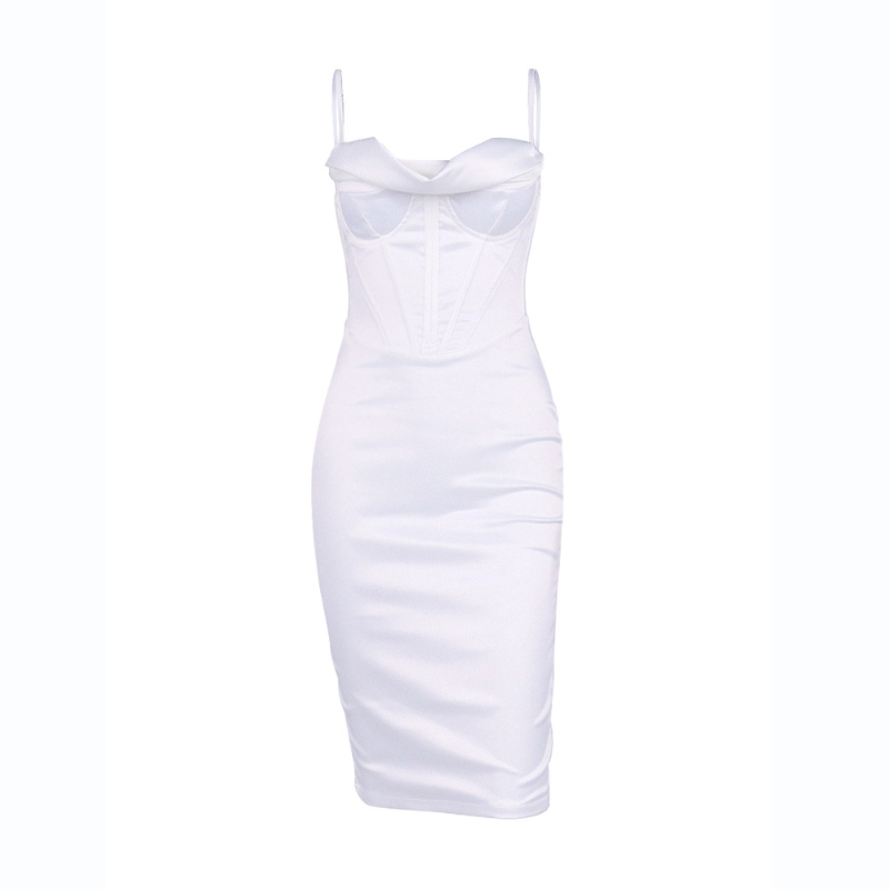 Bella Hadid Dress Satin Fishbone Pleated Suspender Dress
