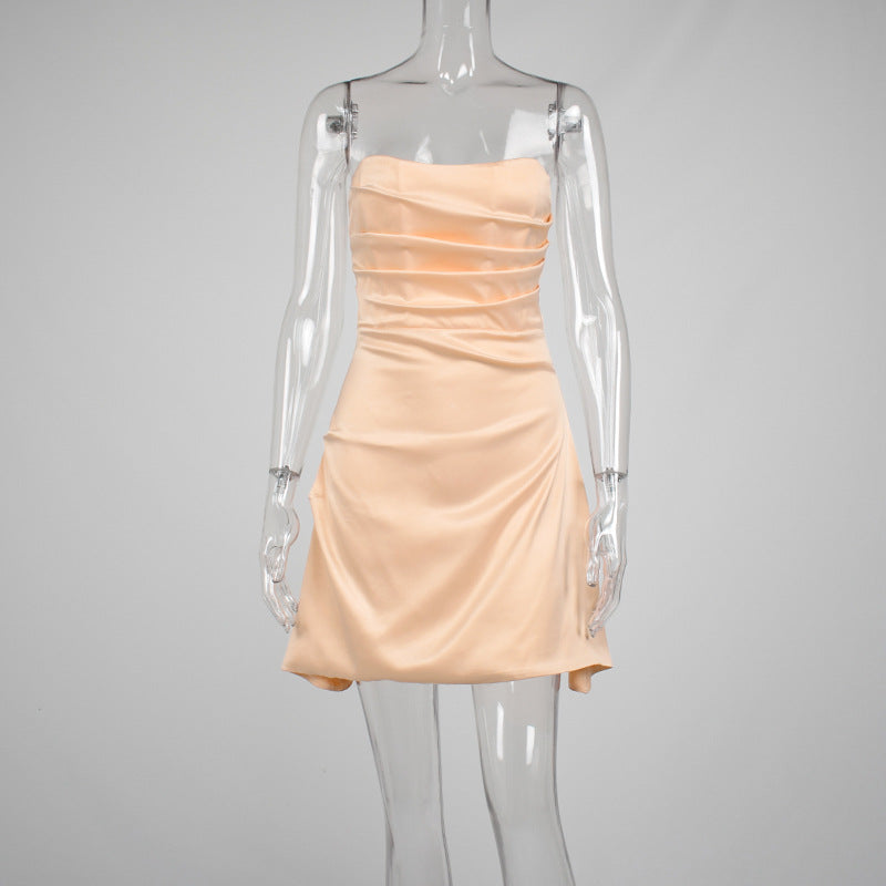 Bella Hadid Dress Sexy Fishbone Pleated Backless Tube Top Dress