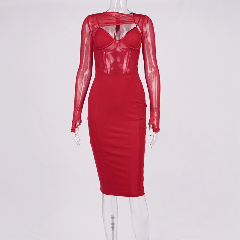 Bella Hadid Dress Sexy Mesh Fishbone Hollow Pleated Backless Dress