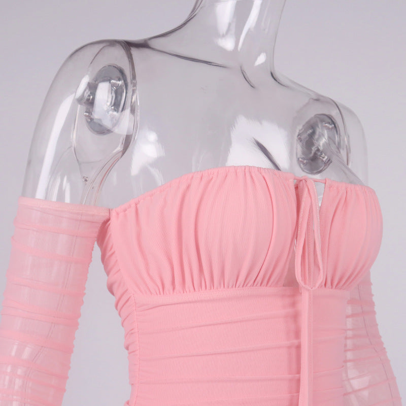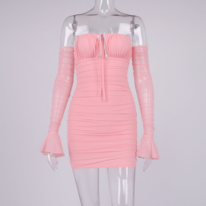 Bella Hadid Dress Mesh Flared Sleeves Pleated Dress