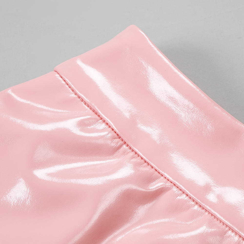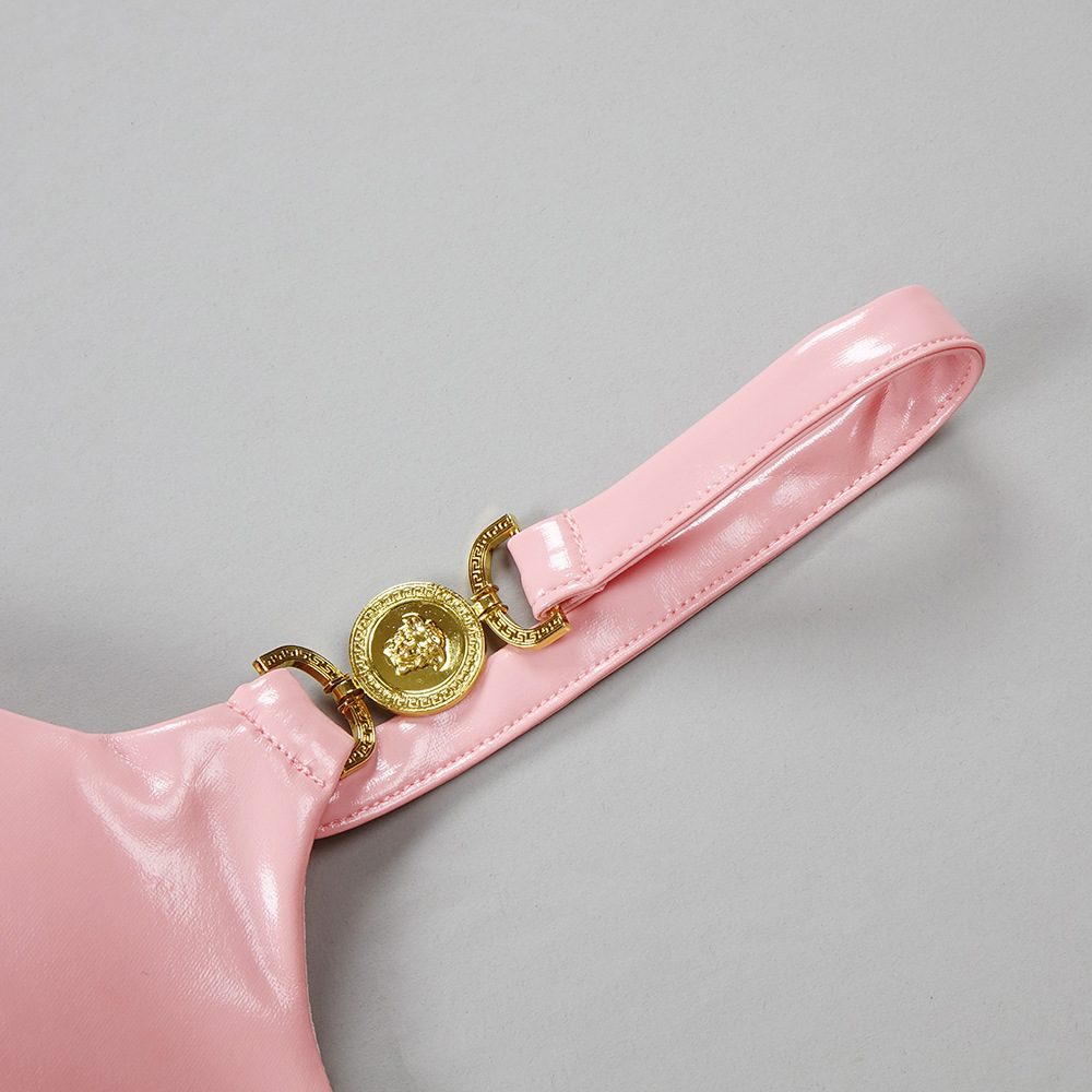 Emily Ratajkowski Dress PU Leather Slip Dress Two-Piece Set