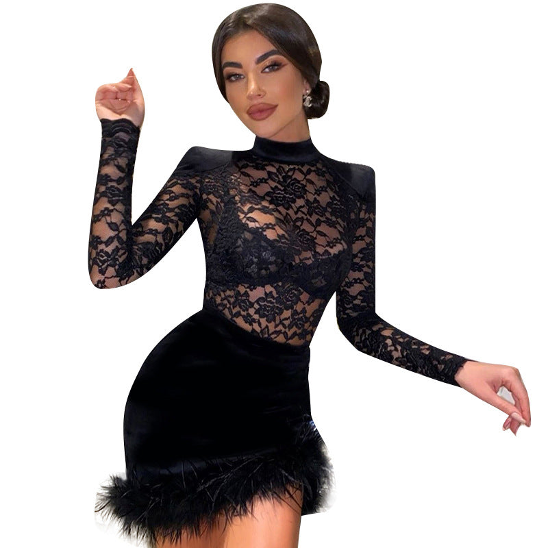 Emily Ratajkowski Dress Sexy Hip Lace Stitching Suede Dress