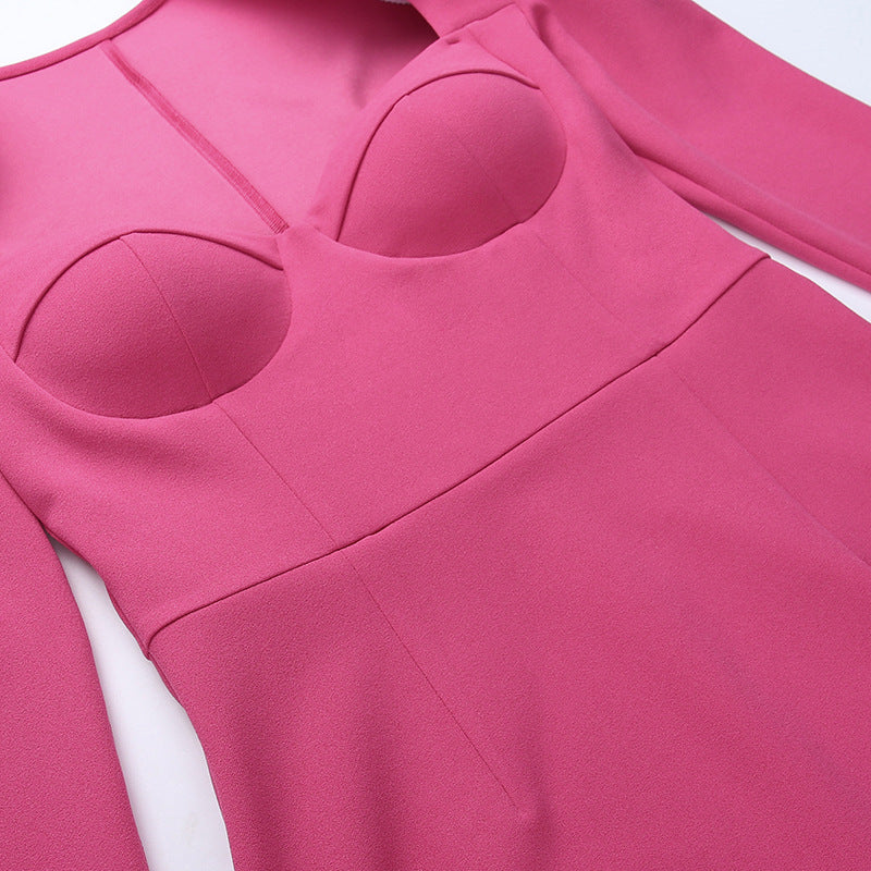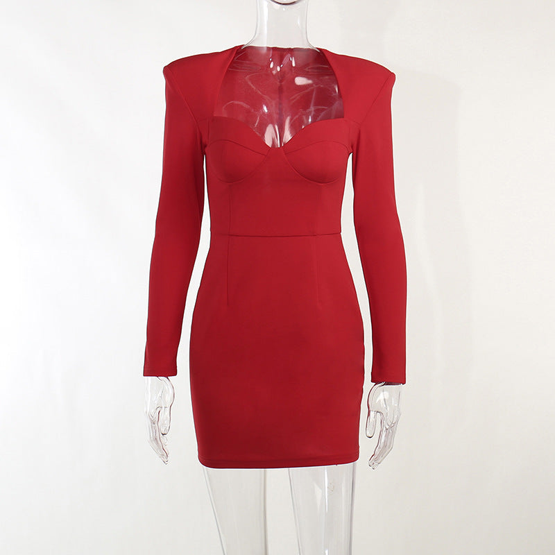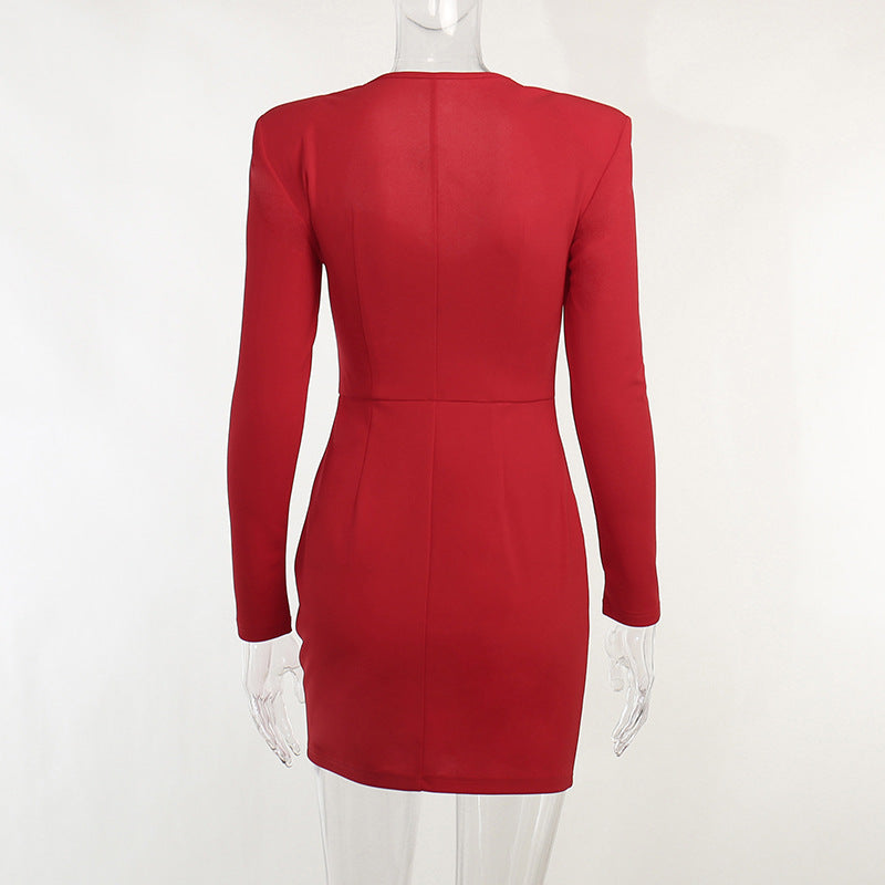 Emily Ratajkowski Dress Padded Shoulder Retro Hip-Wrapped Long Sleeve Skirt