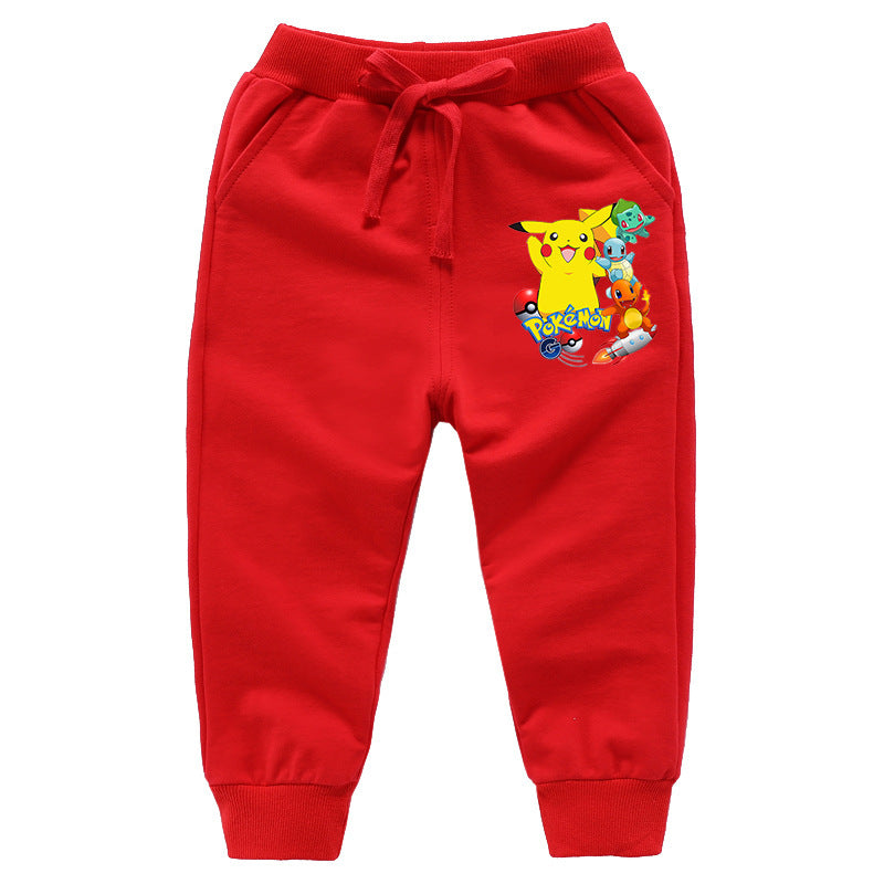 Children Pokemon Pikachu Pants Ankle-Tied Trousers Boys and Girls Cotton Casual Sports Loose