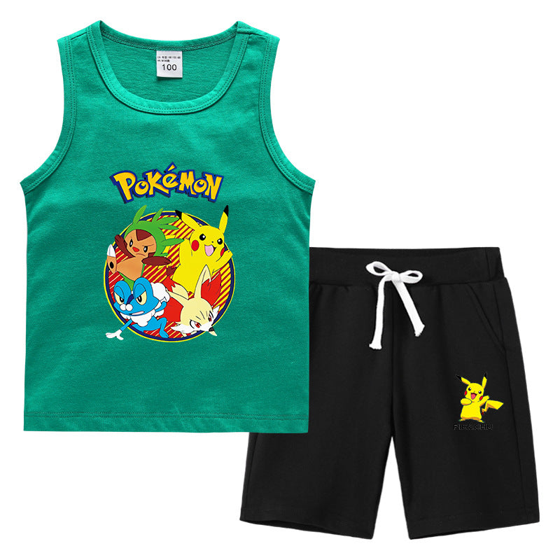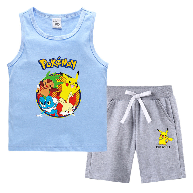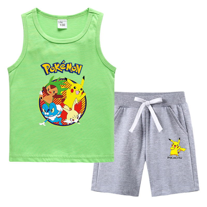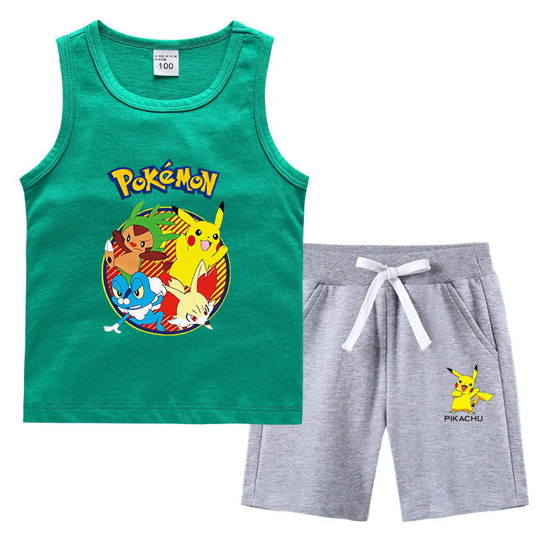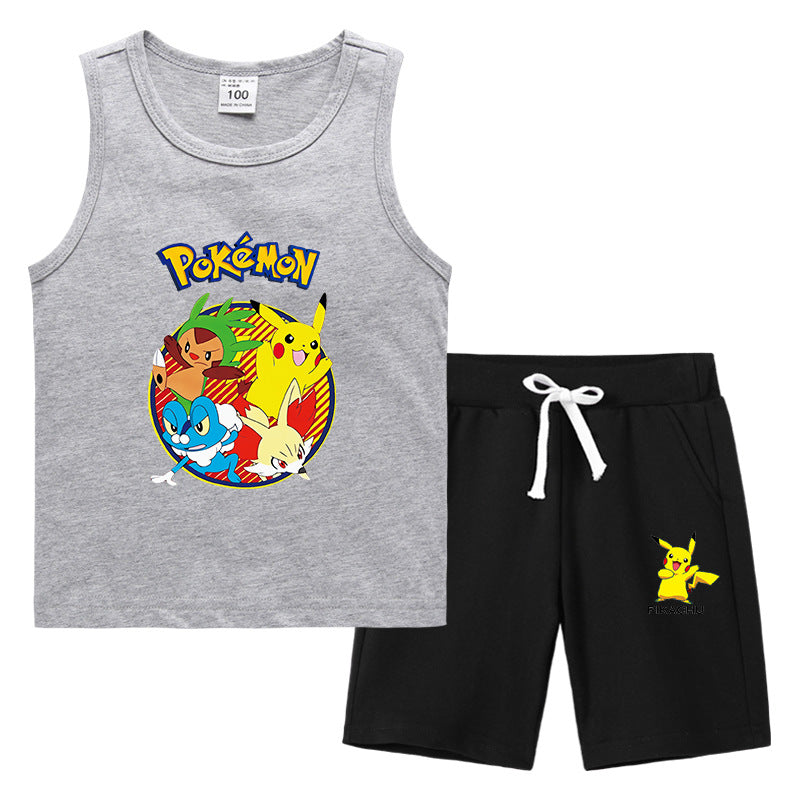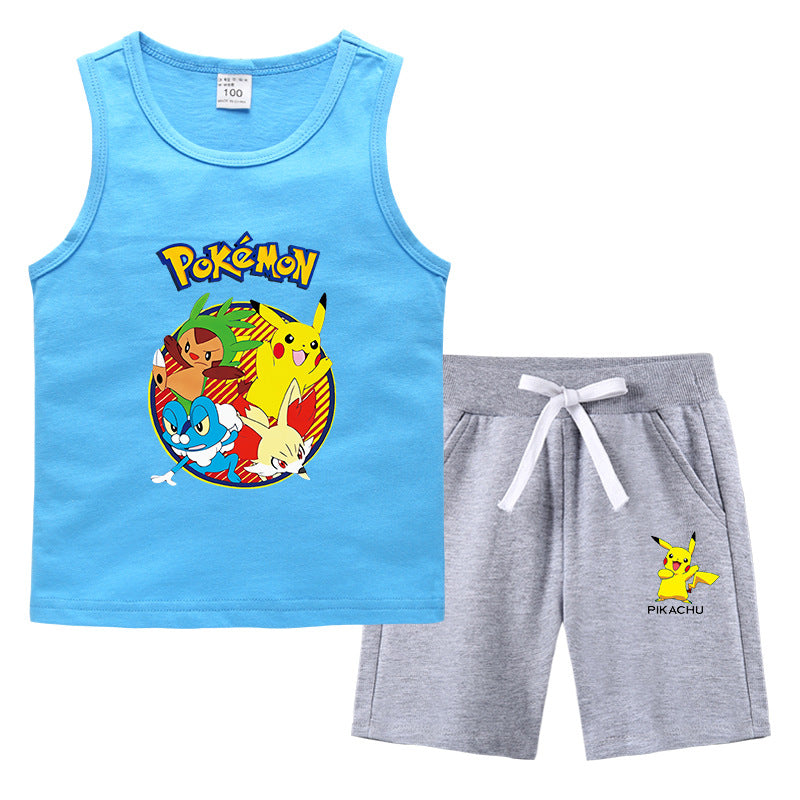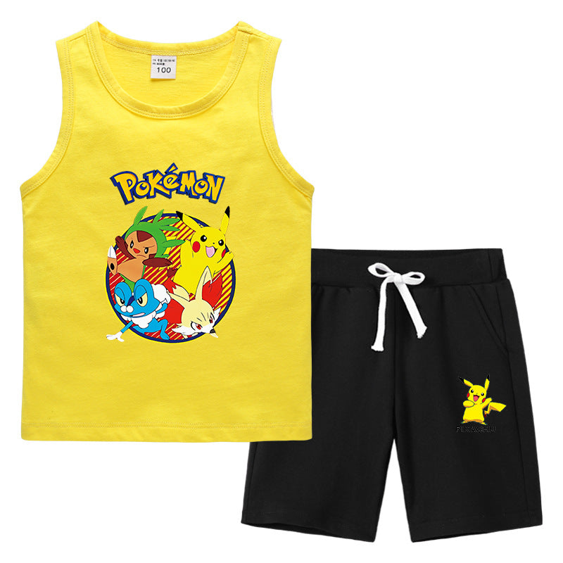 Children Pokemon Pikachu Tshirts & Shorts Summer Vest Middle Pants Sports Casual Thin Sleeveless Two Pieces