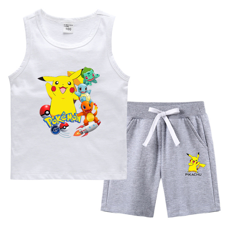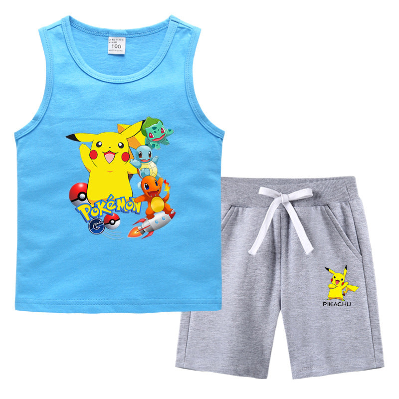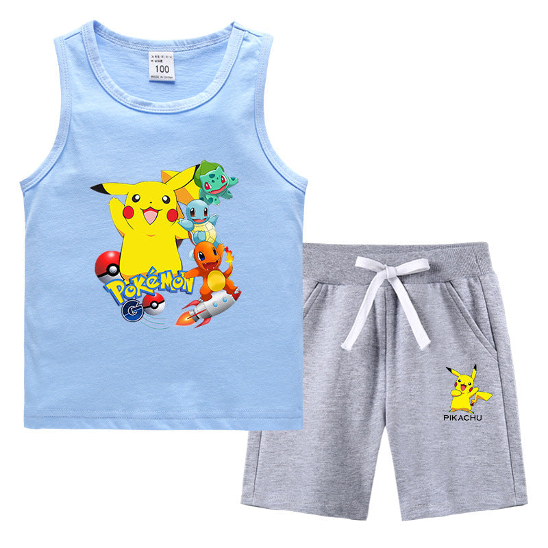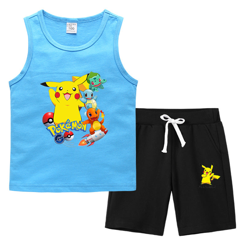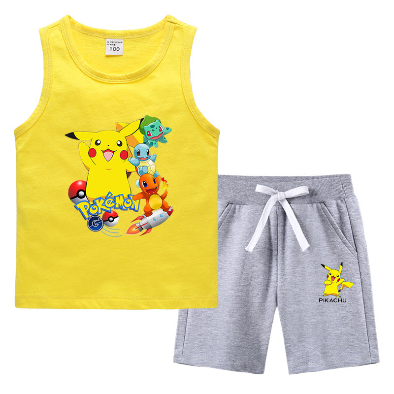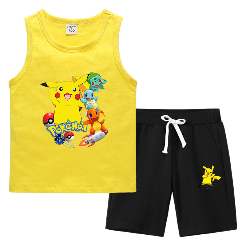 Children Pokemon Pikachu Tshirts & Shorts Summer Vest Middle Pants Sports Casual Thin Two Pieces