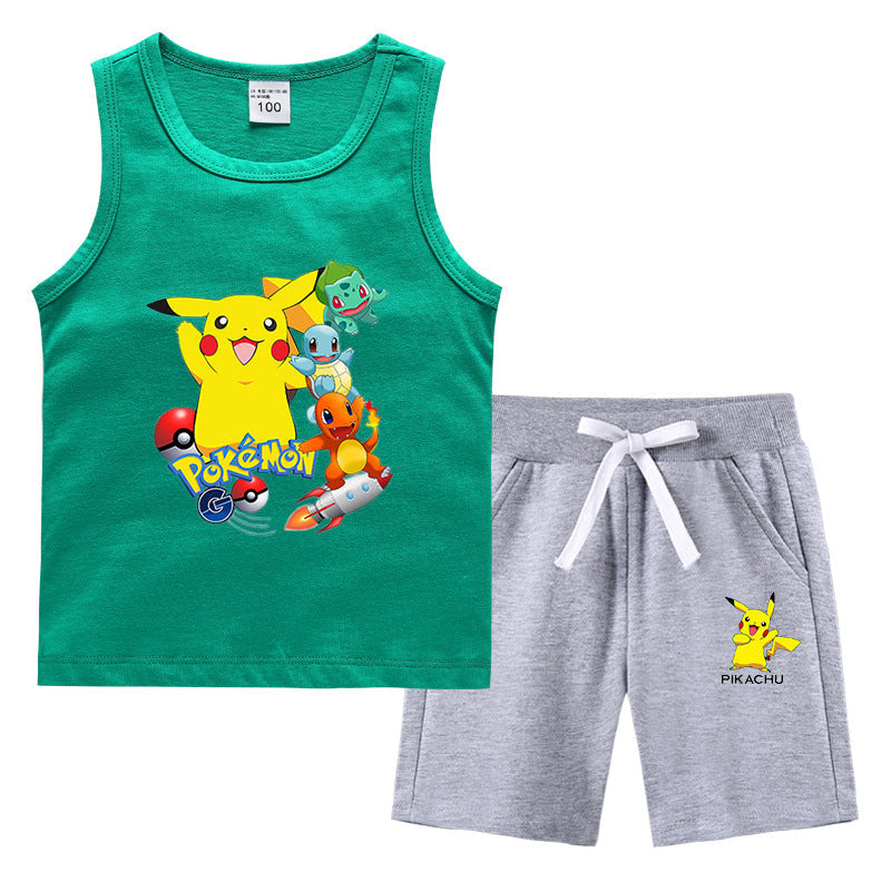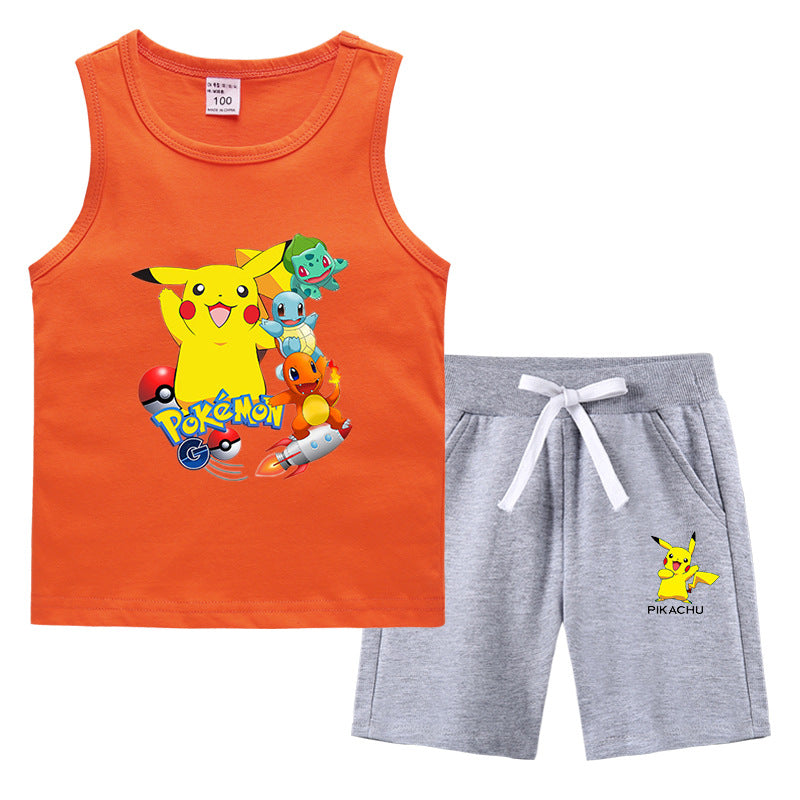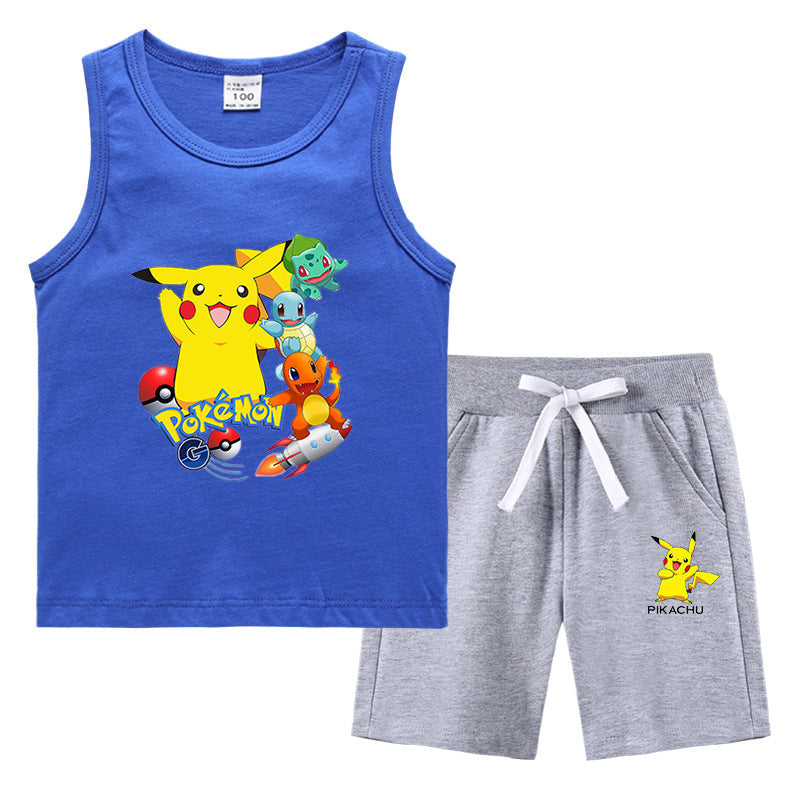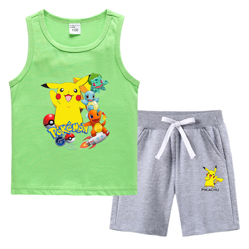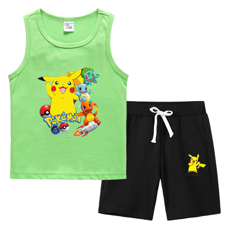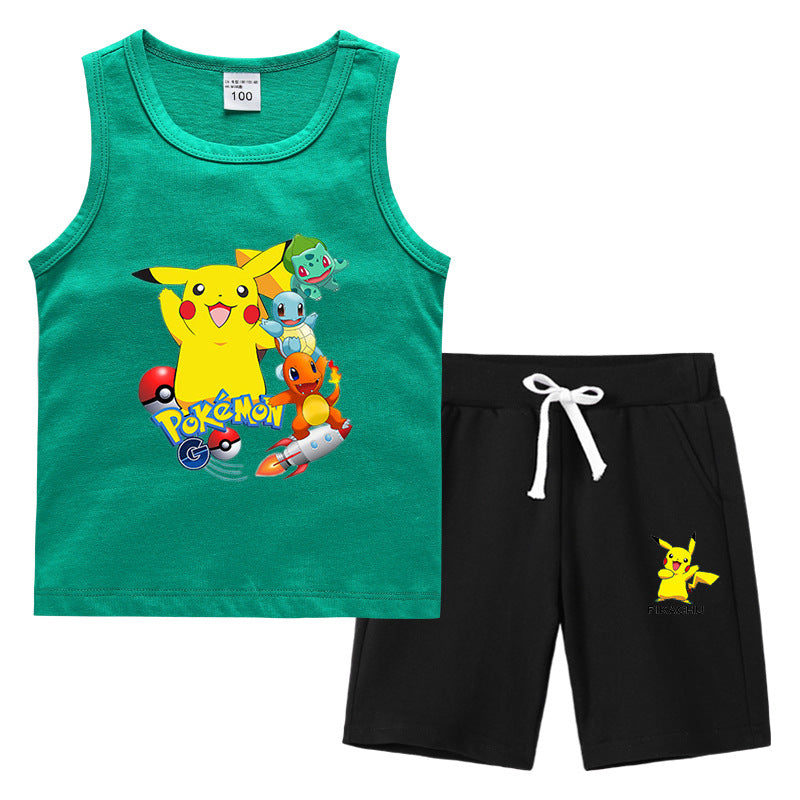 Children Pokemon Pikachu Tshirts & Shorts Summer Vest Middle Pants Sports Casual Thin Two Pieces