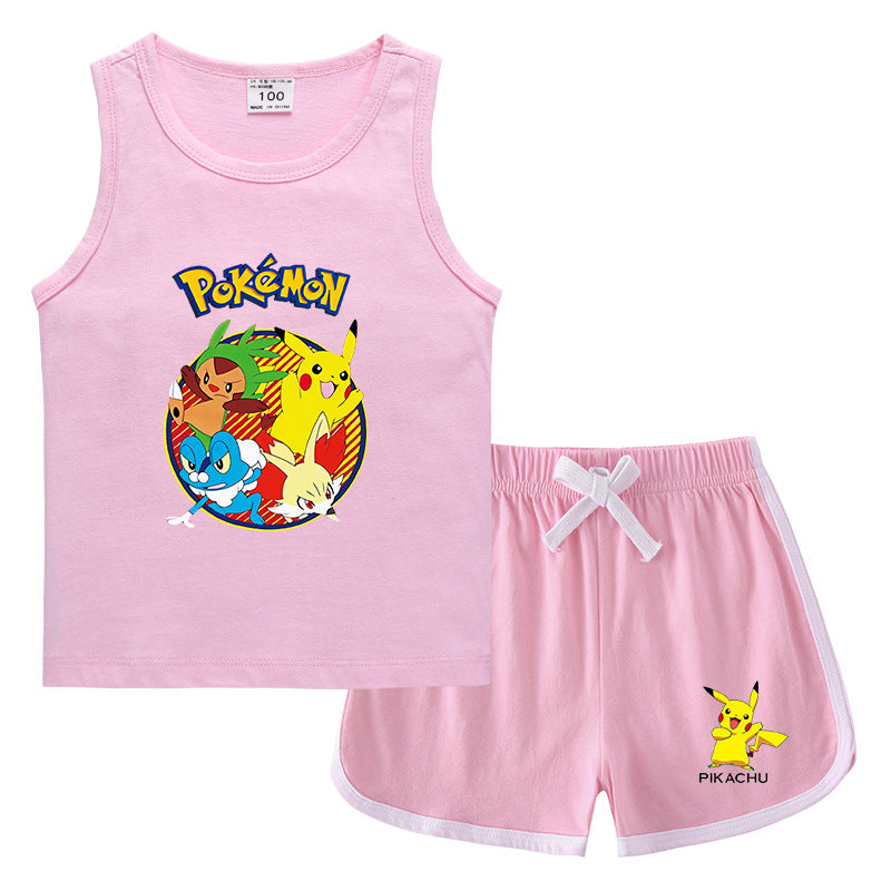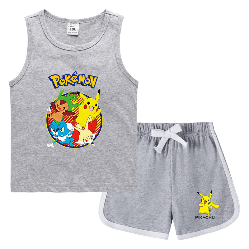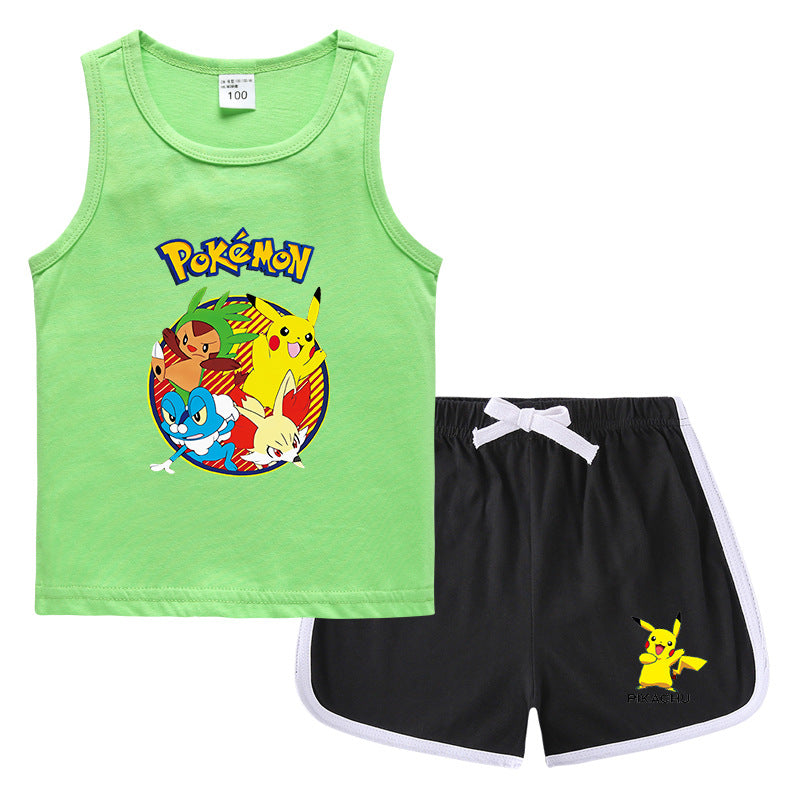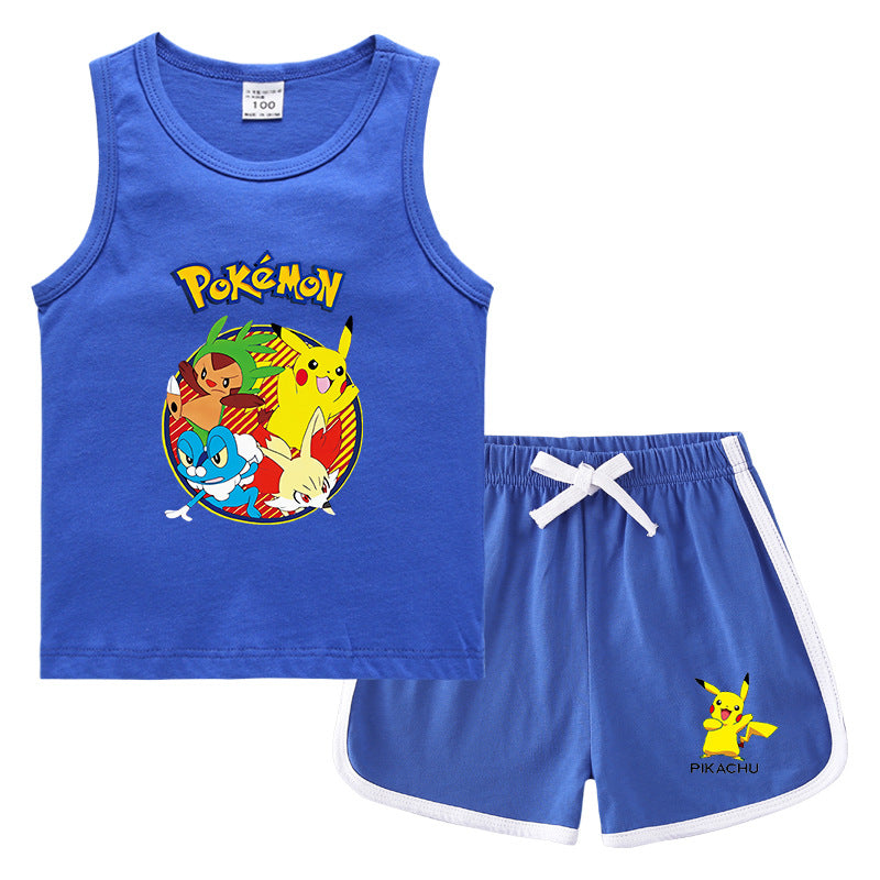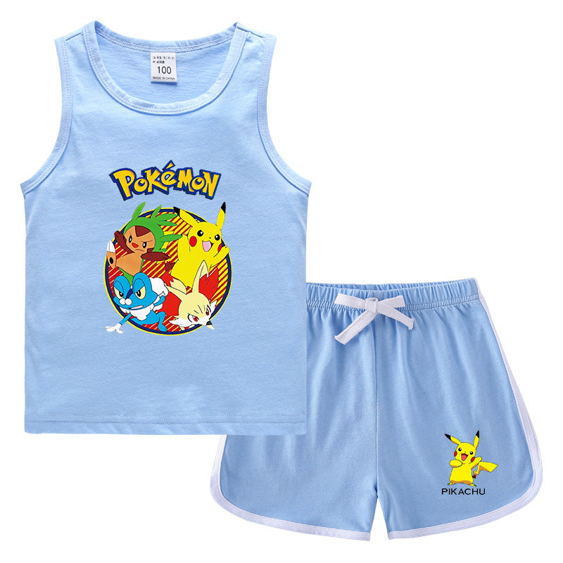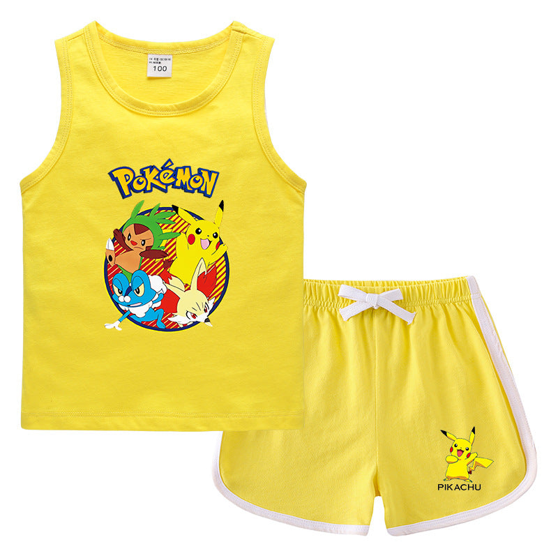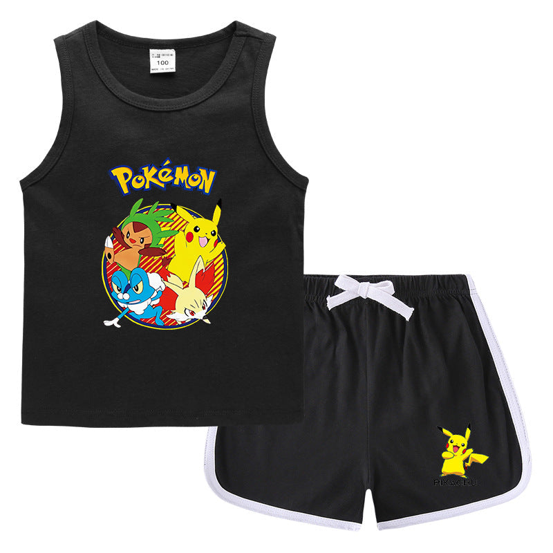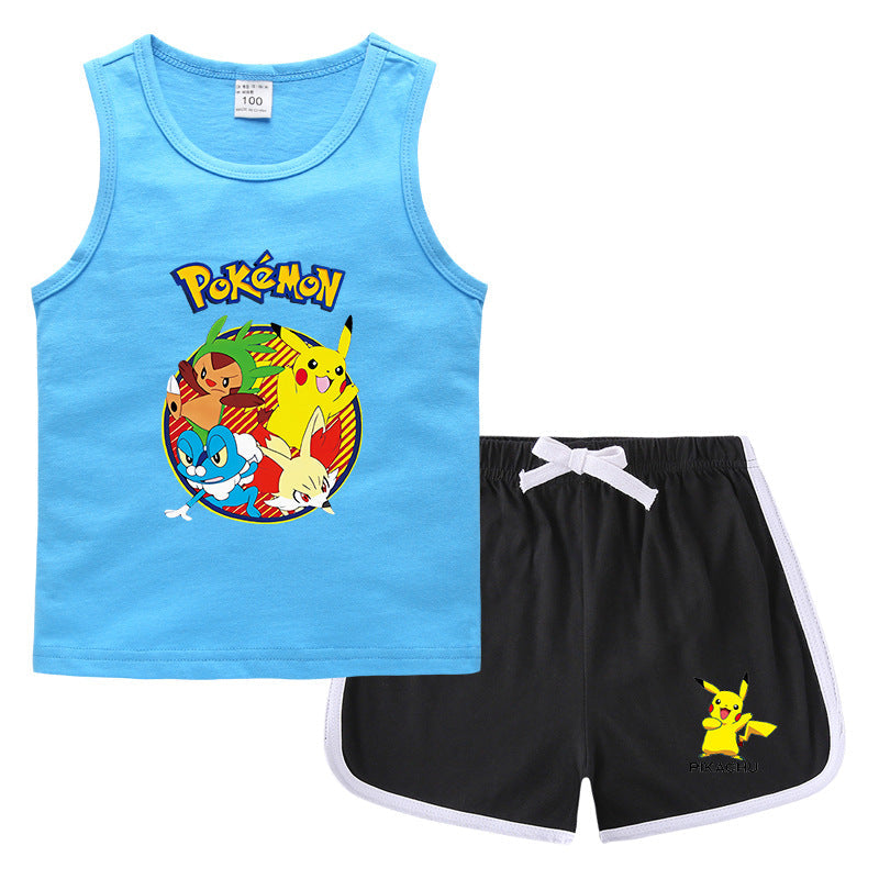 Children Pokemon Pikachu Tshirts & Shorts Vest Middle Pants Casual Sweat Wicking Suit