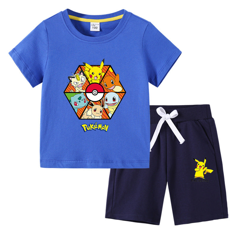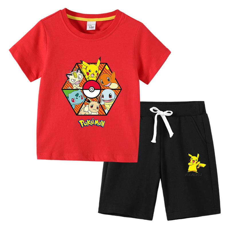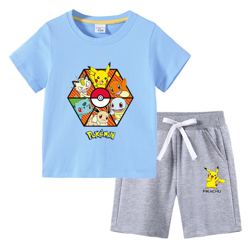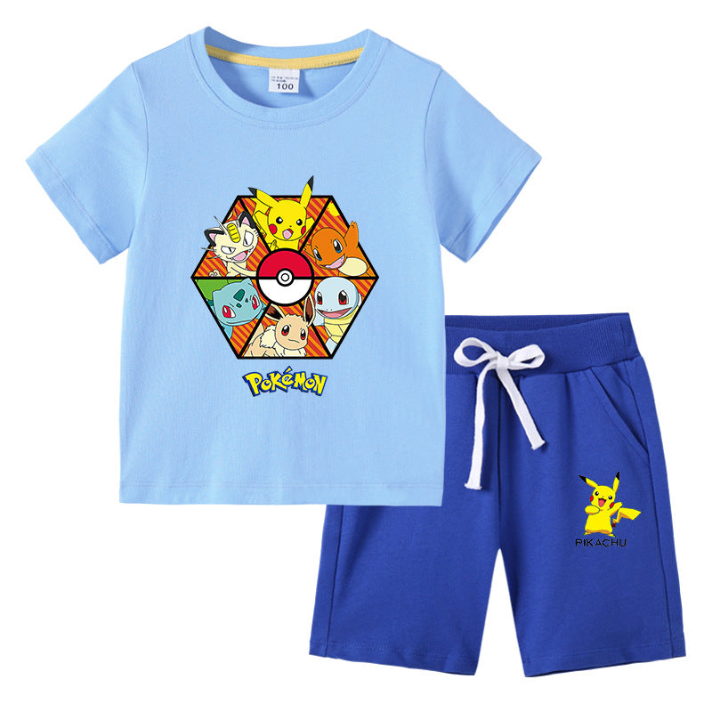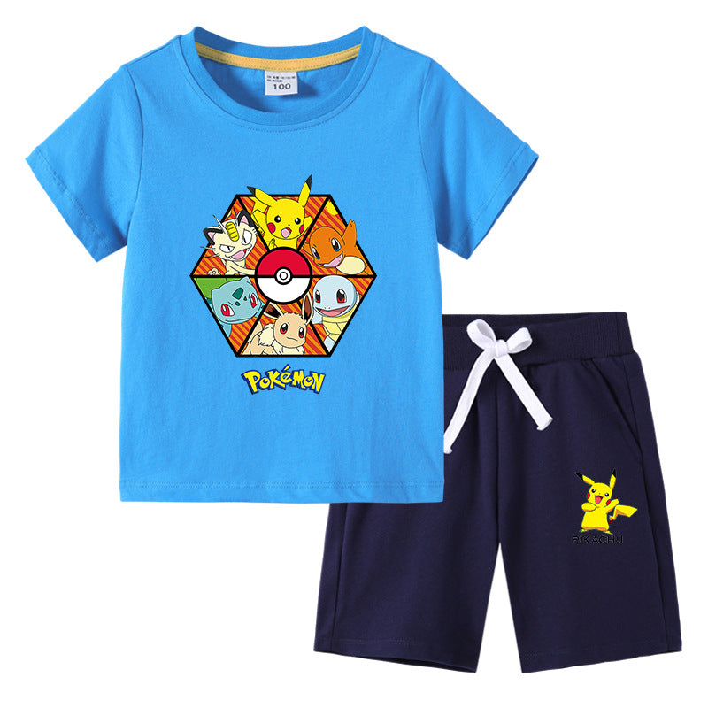 Children Pokemon Pikachu Tshirts & Shorts Cotton Short Sleeve Shorts Two Pieces Sports Loose