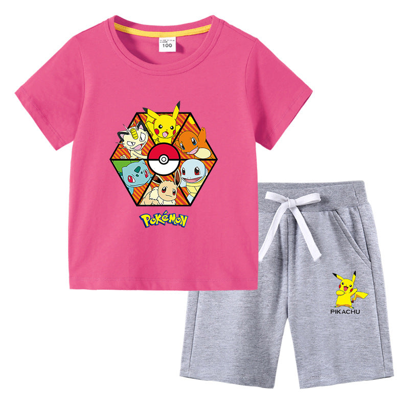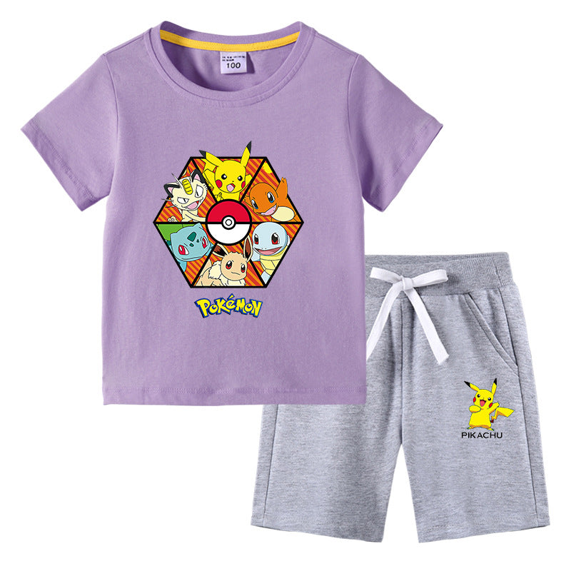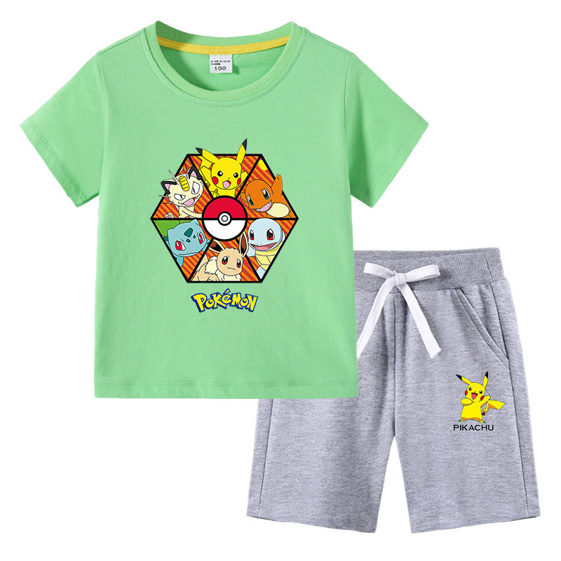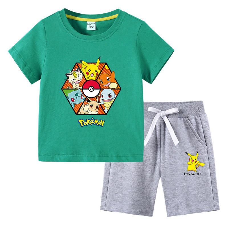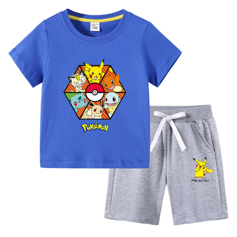Children Pokemon Pikachu Tshirts & Shorts Cotton Short Sleeve Shorts Two Pieces Sports Loose