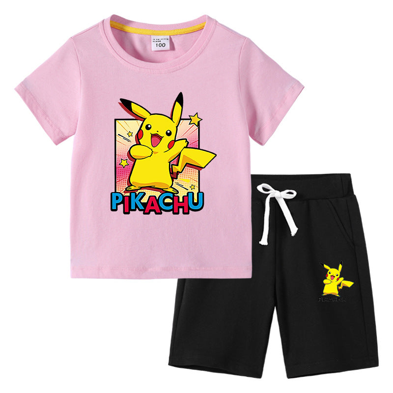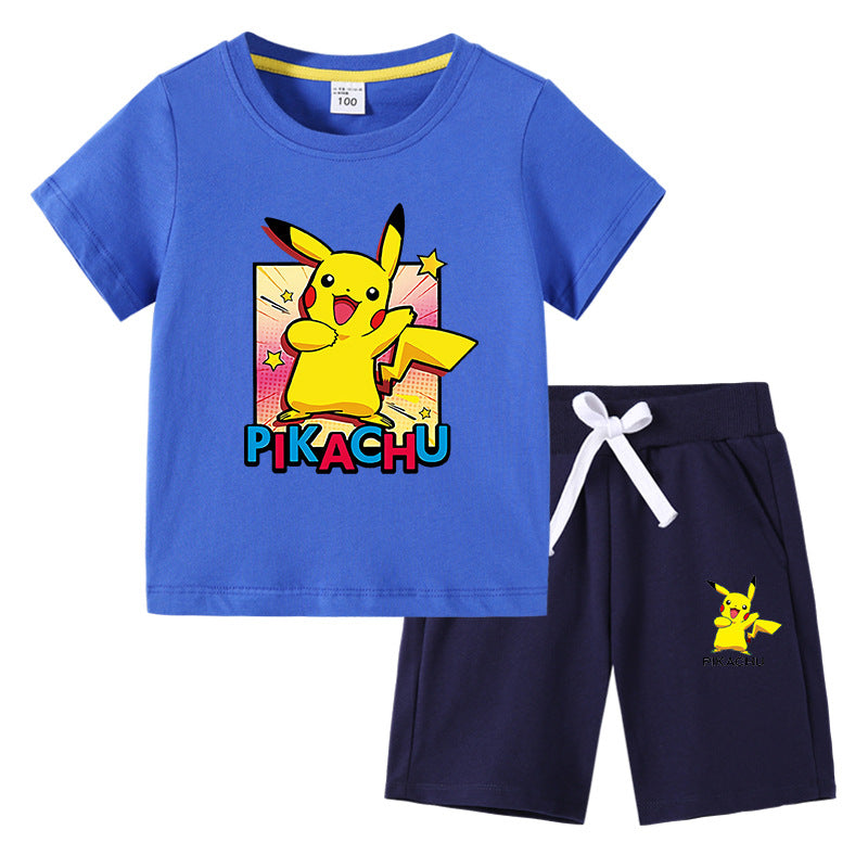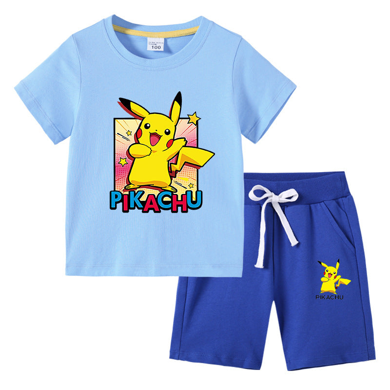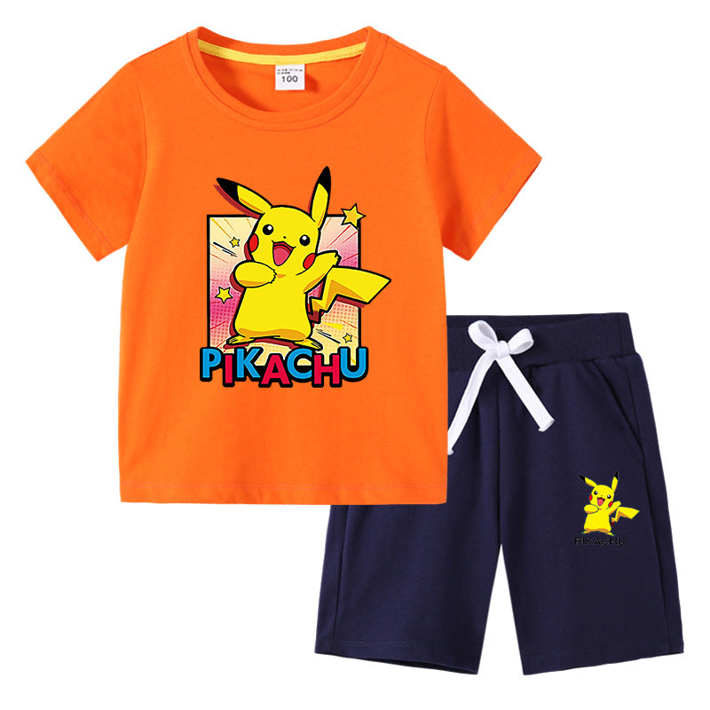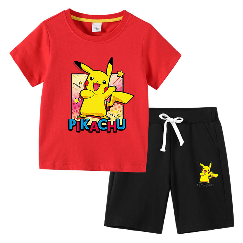 Children Pokemon Pikachu Tshirts & Shorts Cotton Children Short Sleeve Shorts Two Pieces