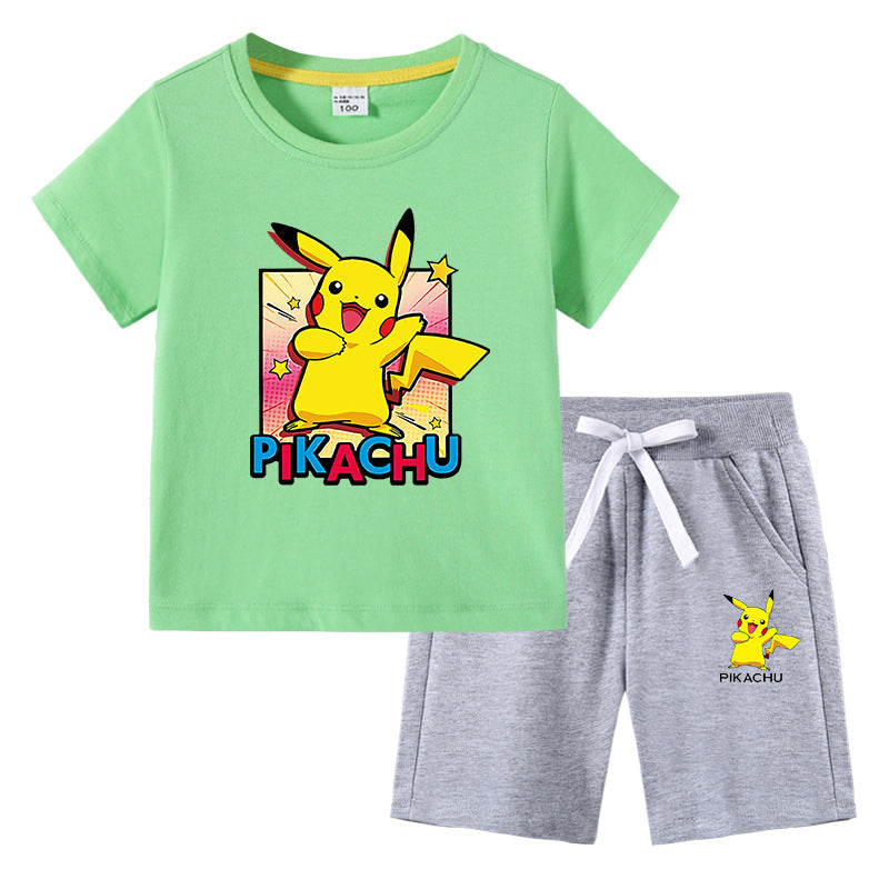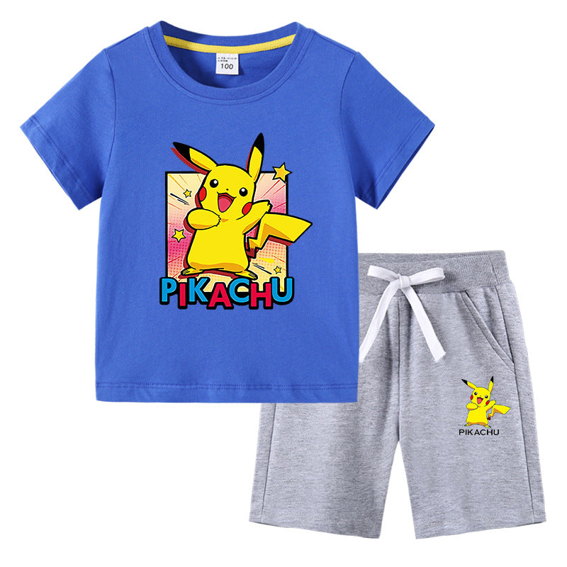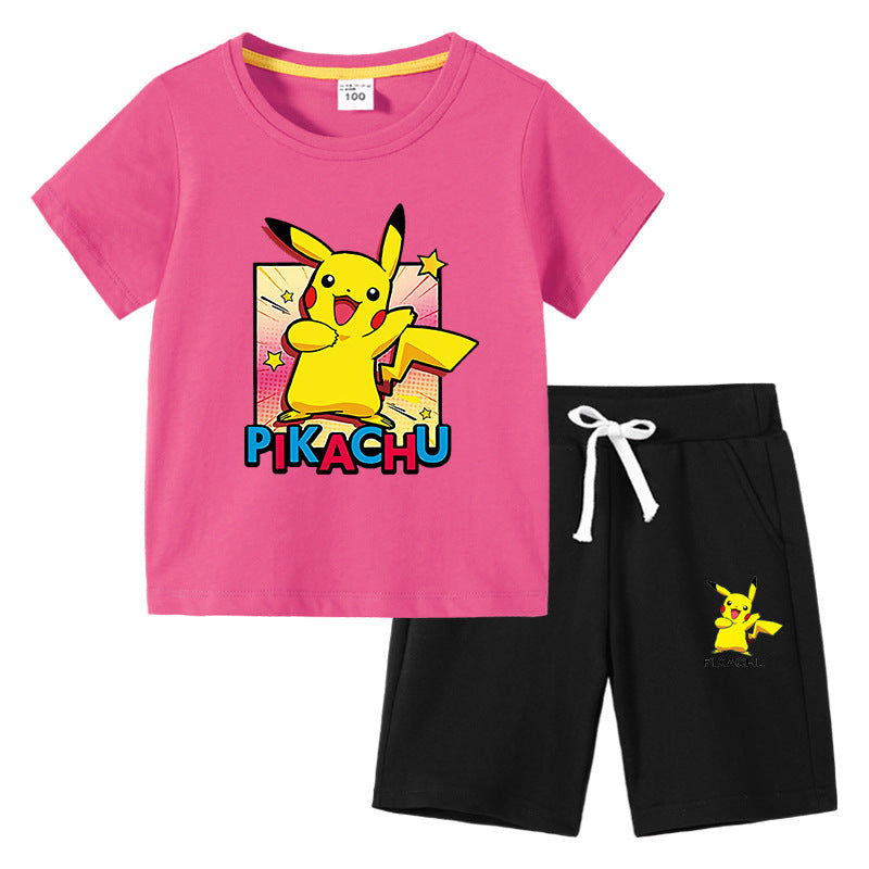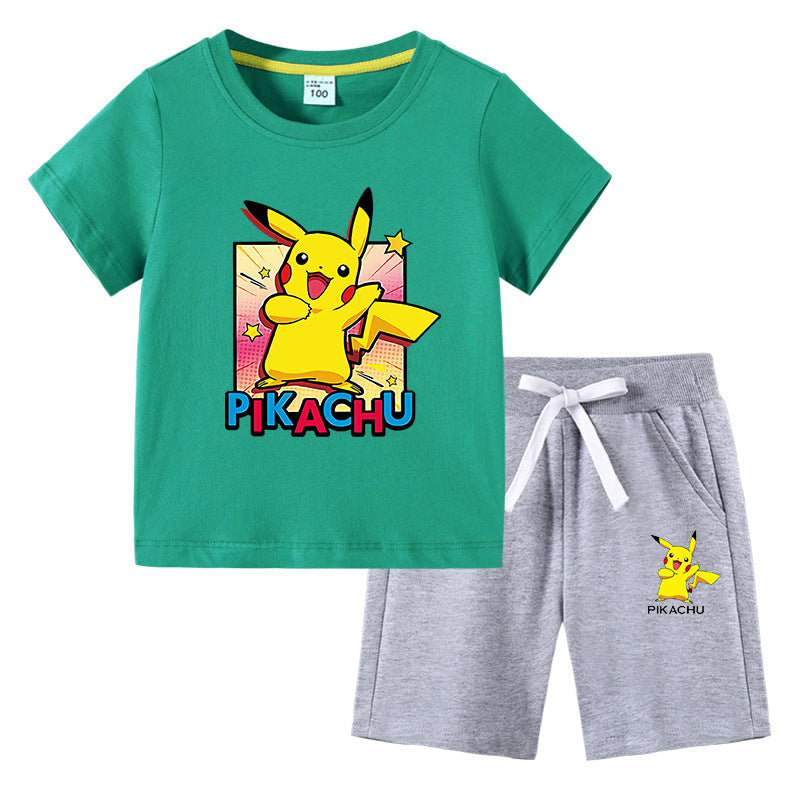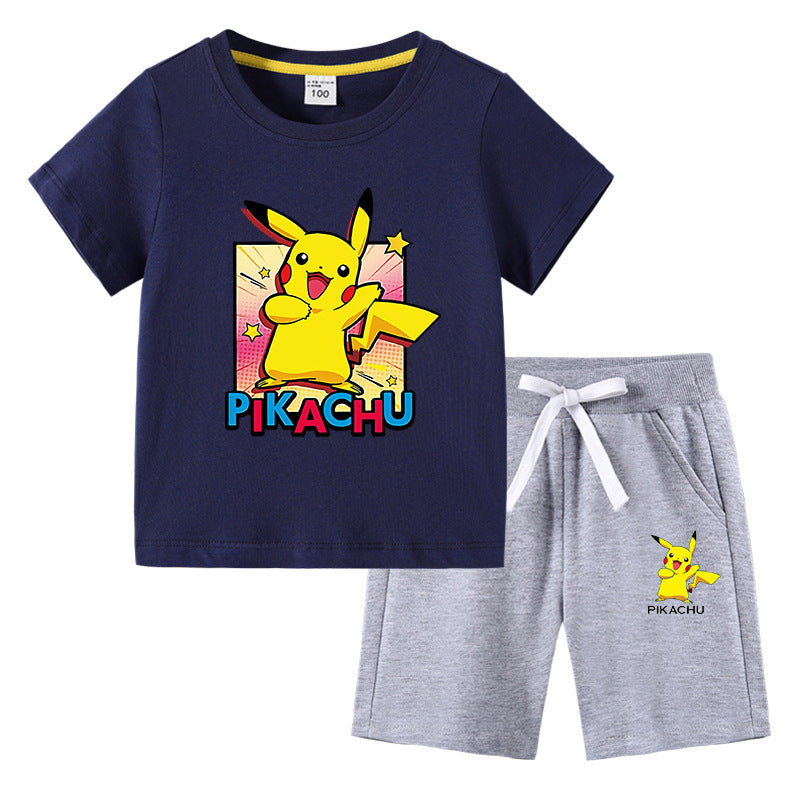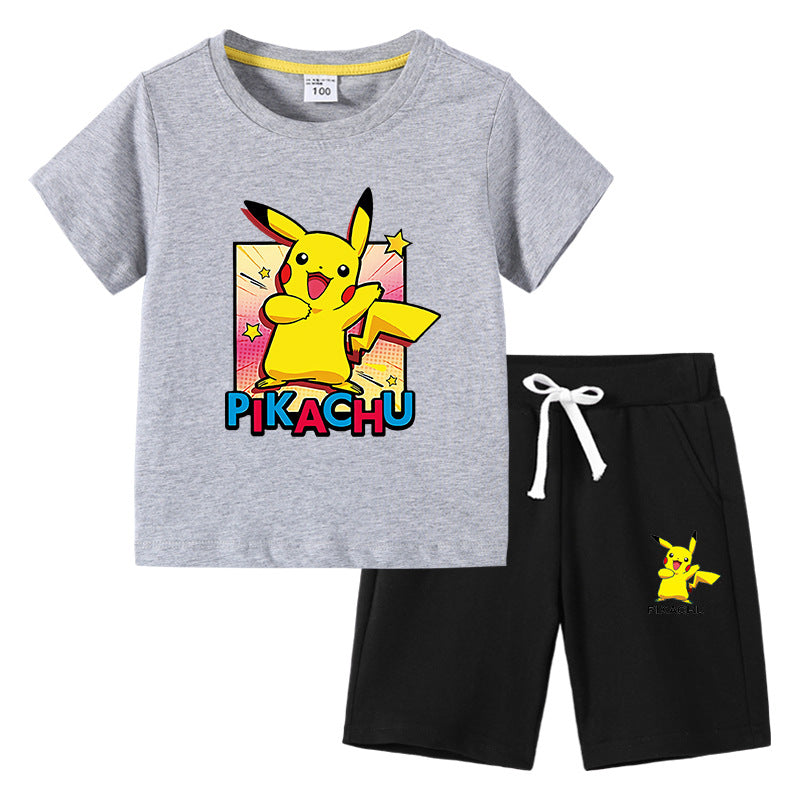 Children Pokemon Pikachu Tshirts & Shorts Cotton Children Short Sleeve Shorts Two Pieces