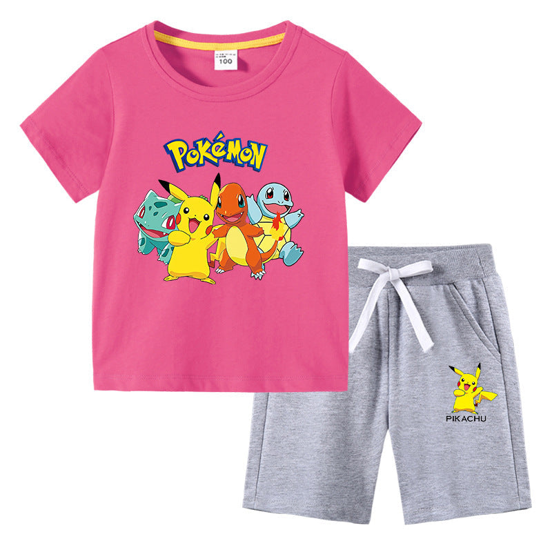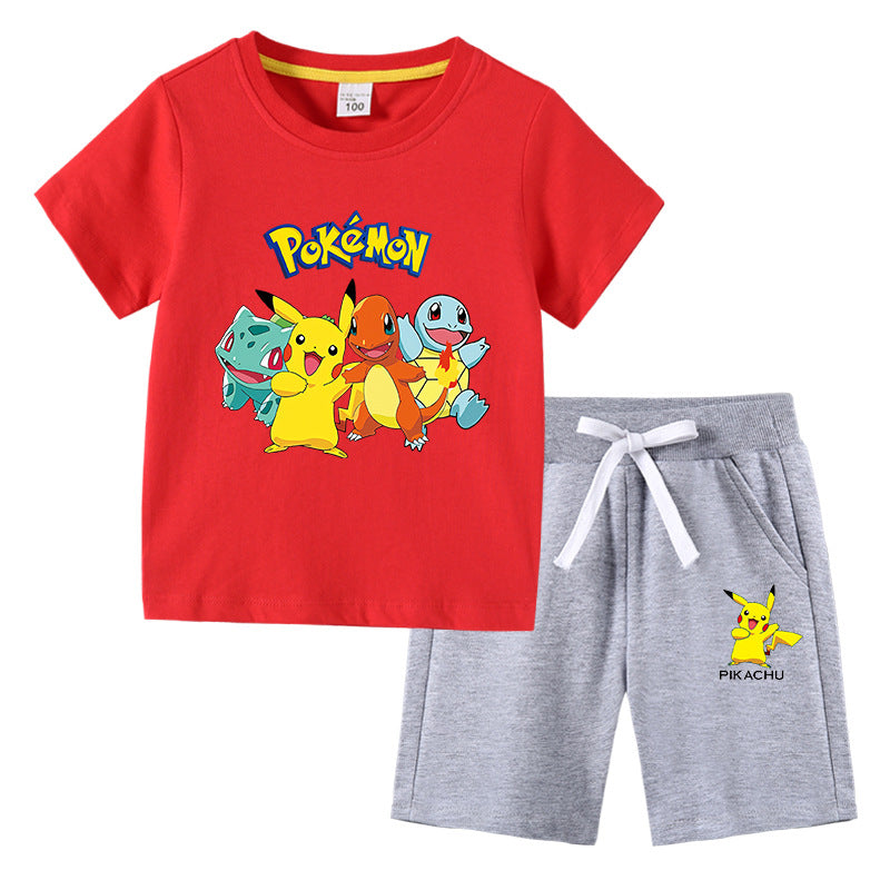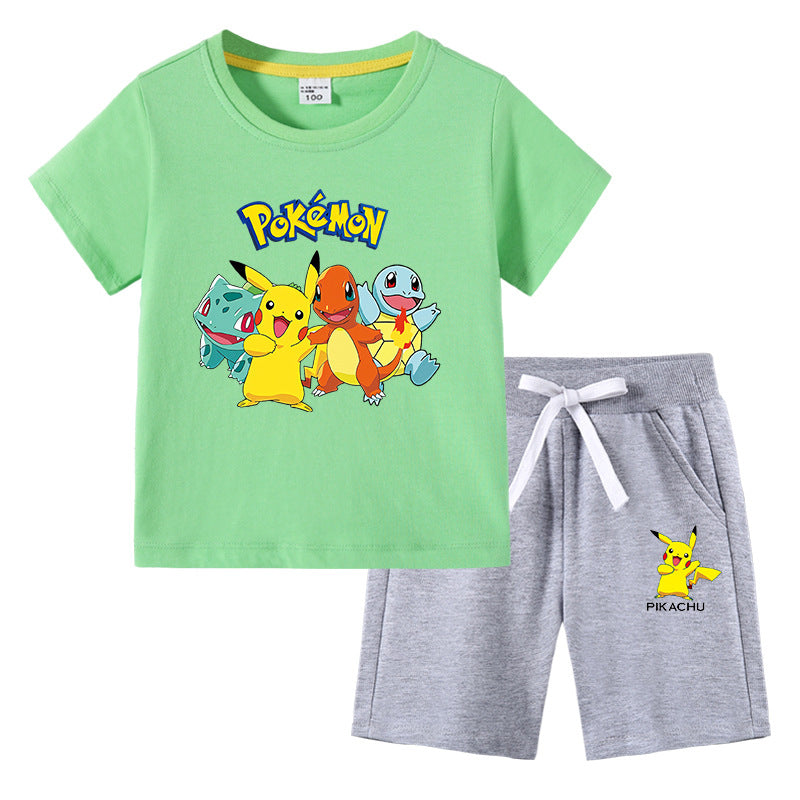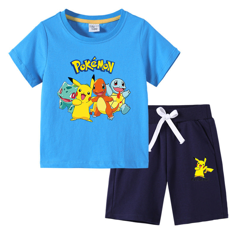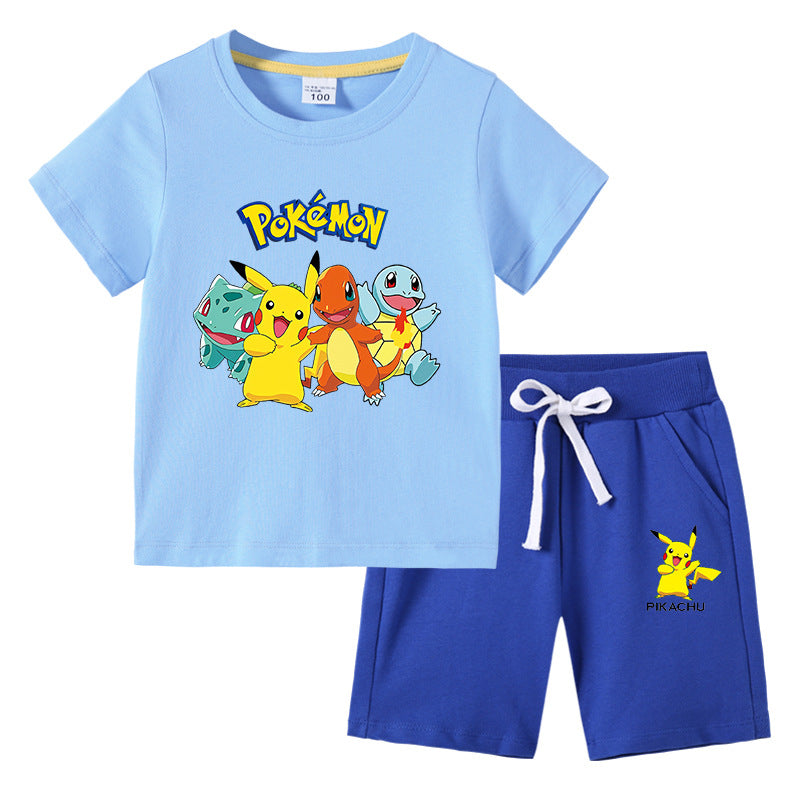 Children Pokemon Pikachu Tshirts & Shorts Cotton Short Sleeve Shorts Two Pieces Neutral