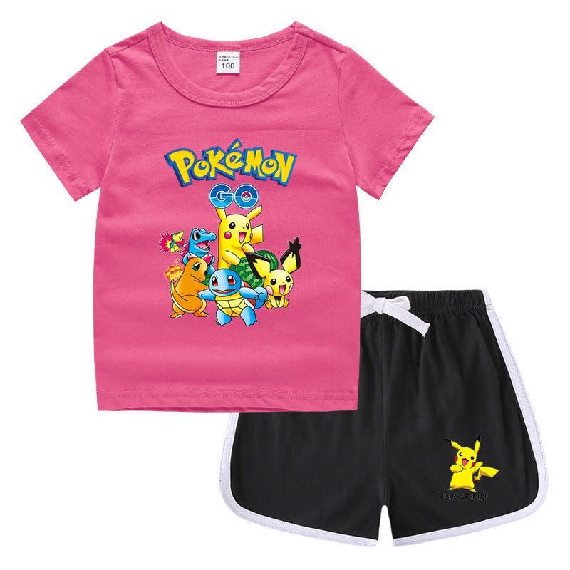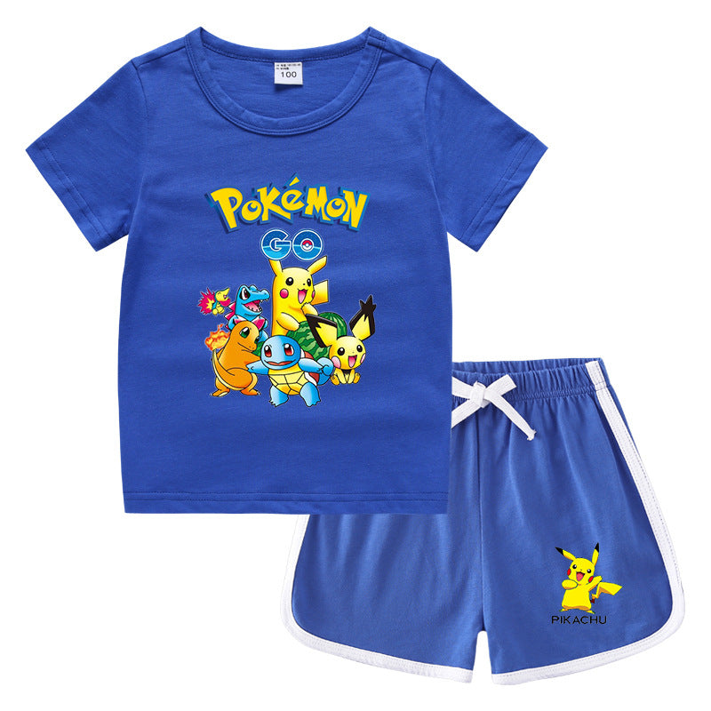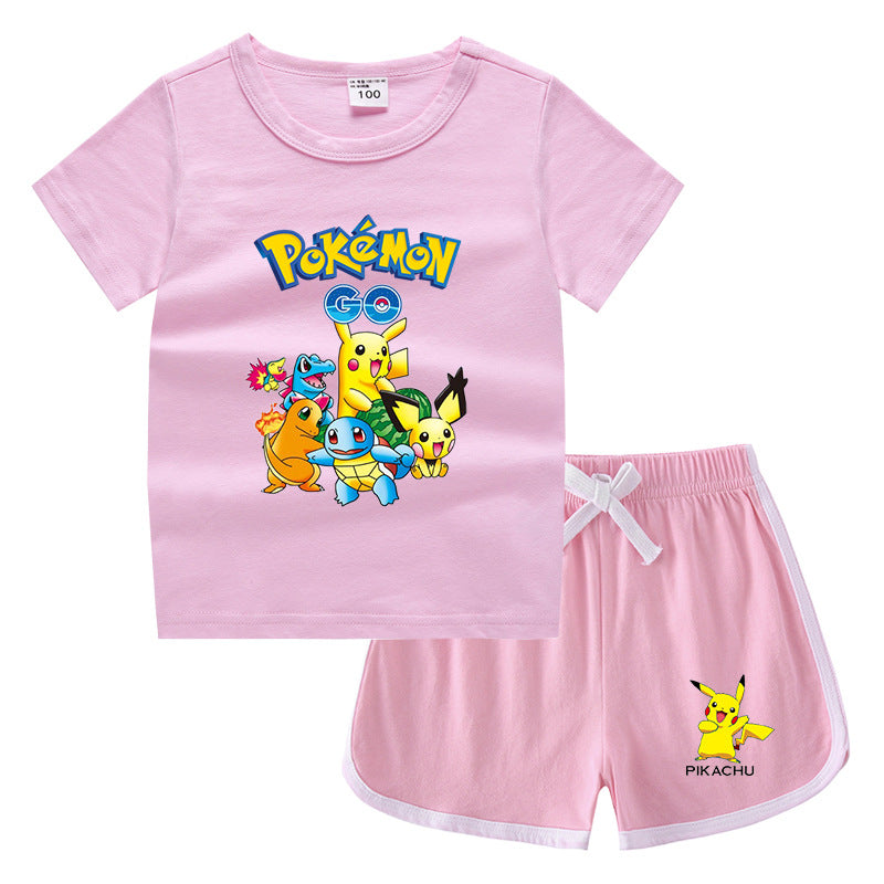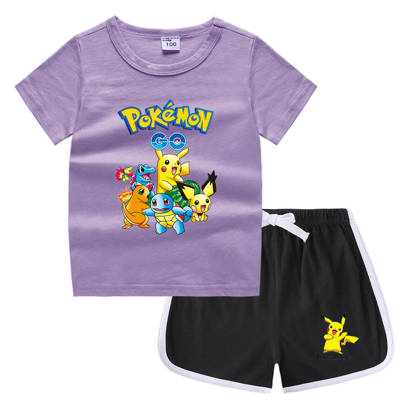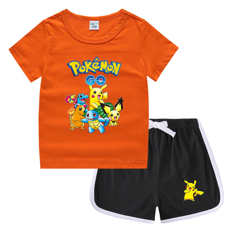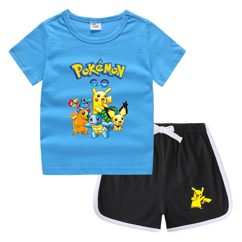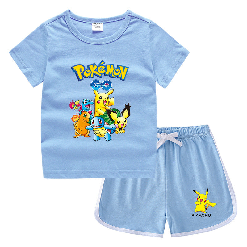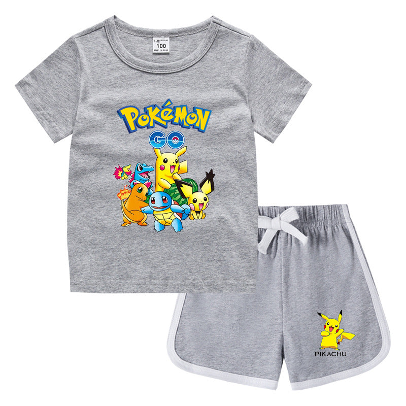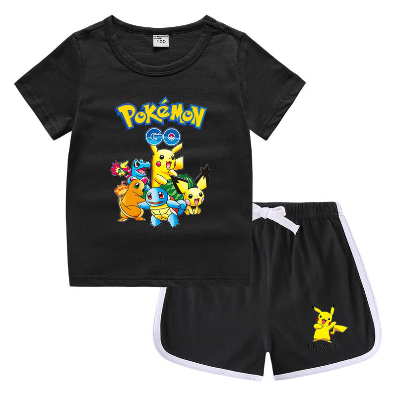 Children Pokemon Pikachu Tshirts & Shorts Leisure Sports Suction Suit Neutral