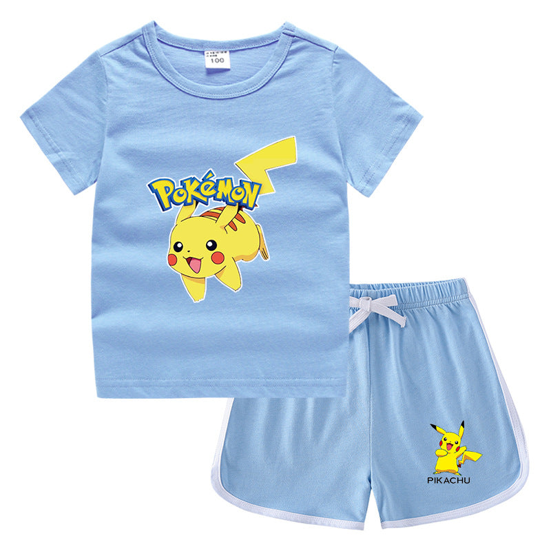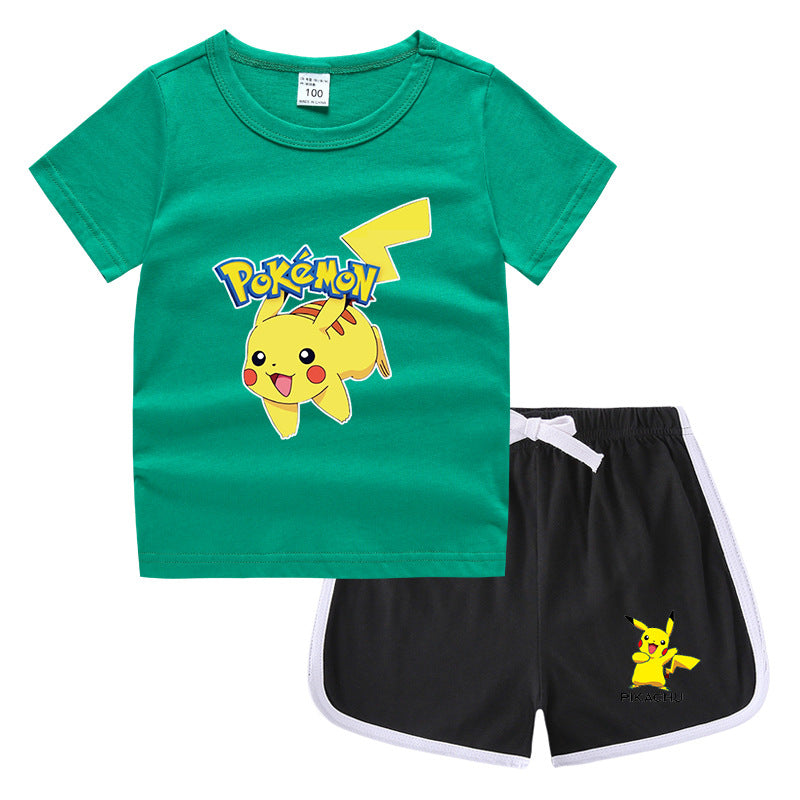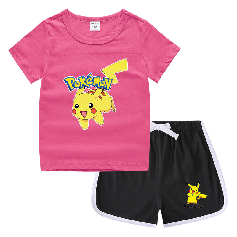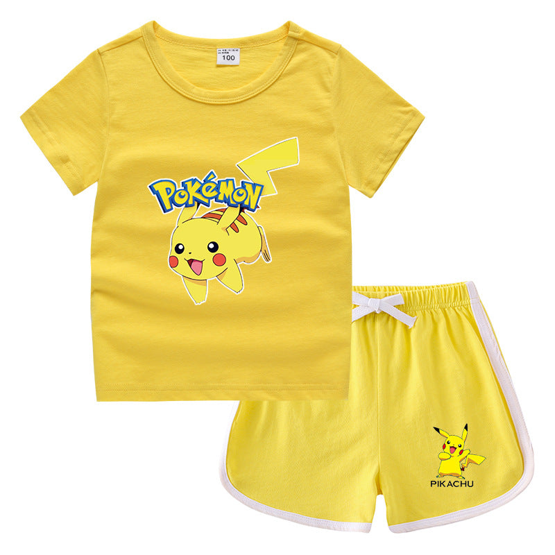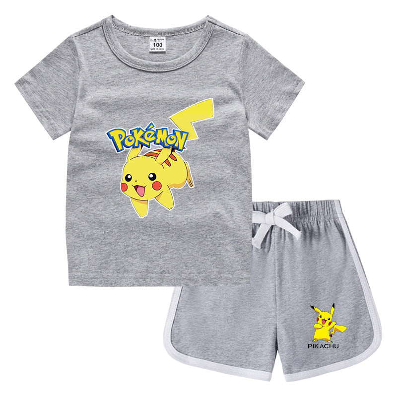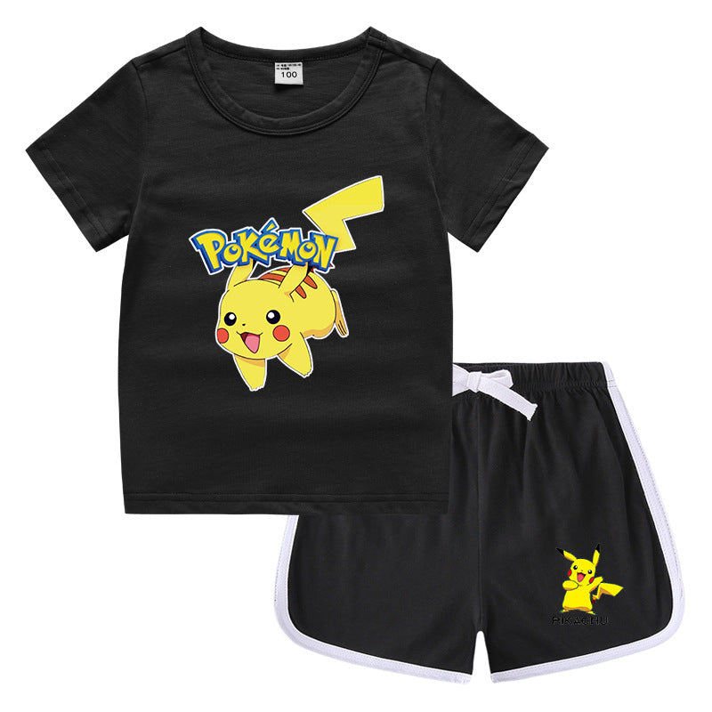 Children Pokemon Pikachu Tshirts & Shorts Leisure Sports Suction Suit Neutral