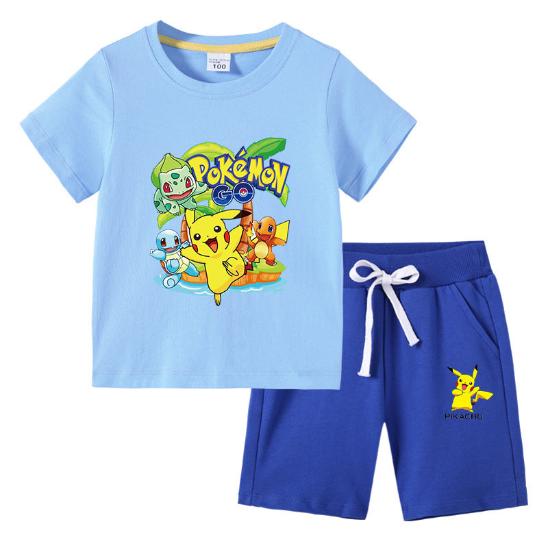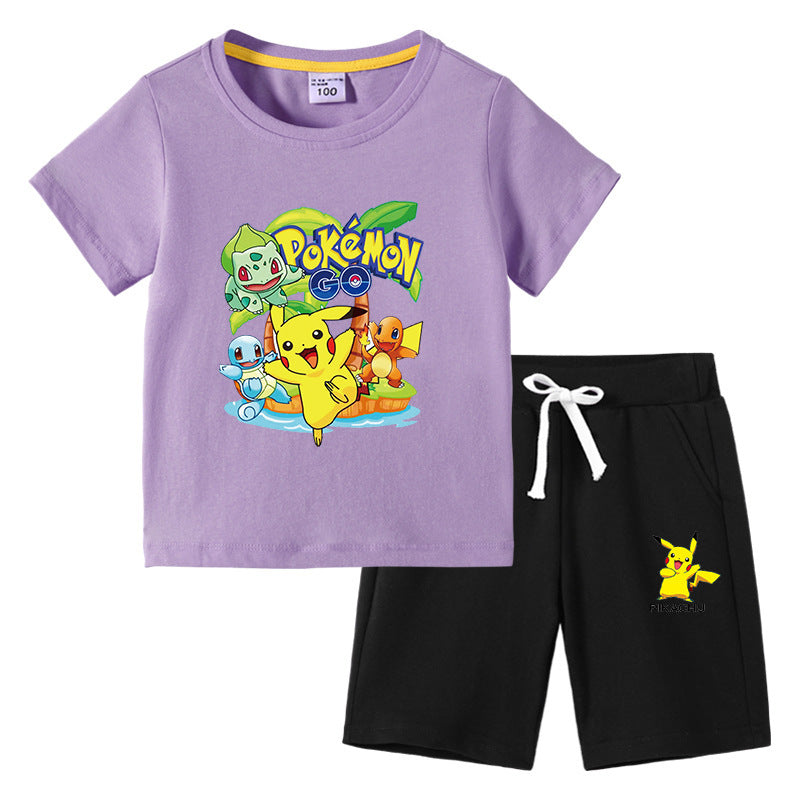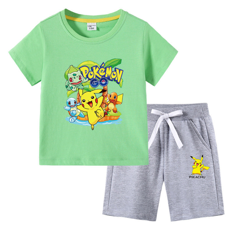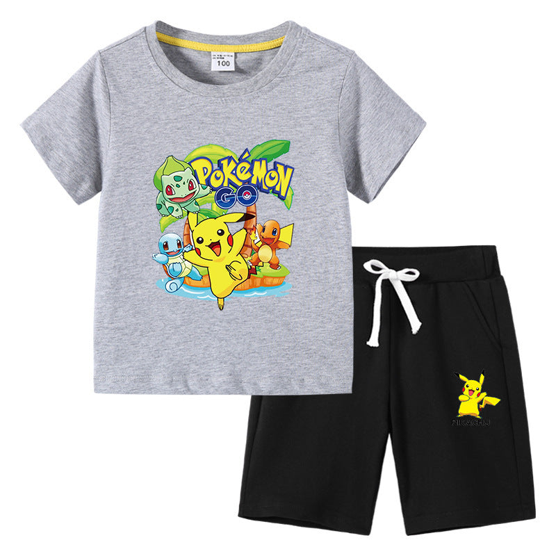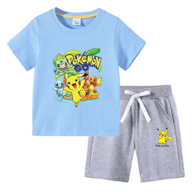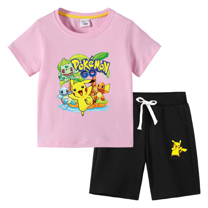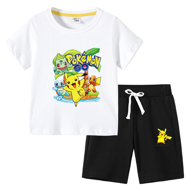 Children Pokemon Pikachu Tshirts & Shorts Cotton Short Sleeve Shorts Two Pieces Neutral
