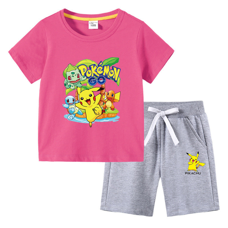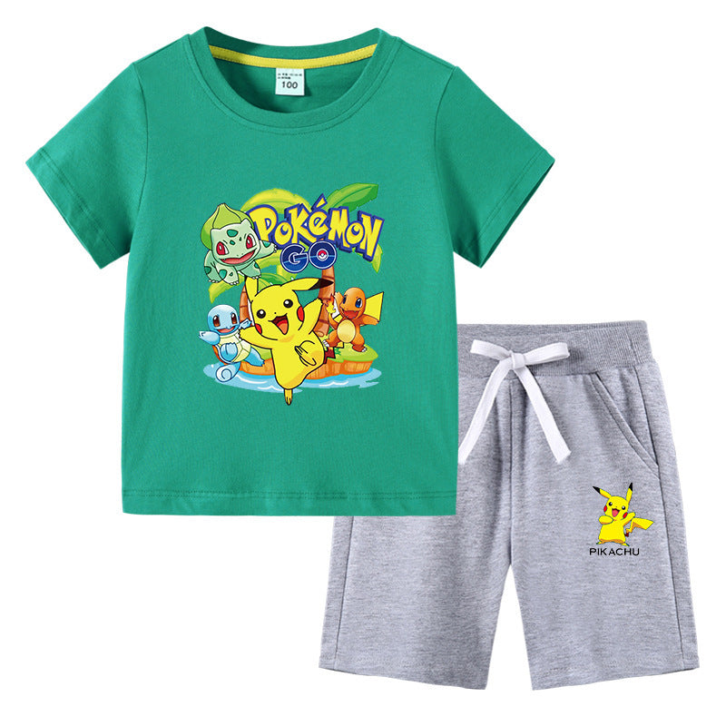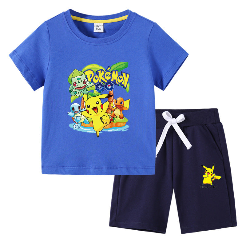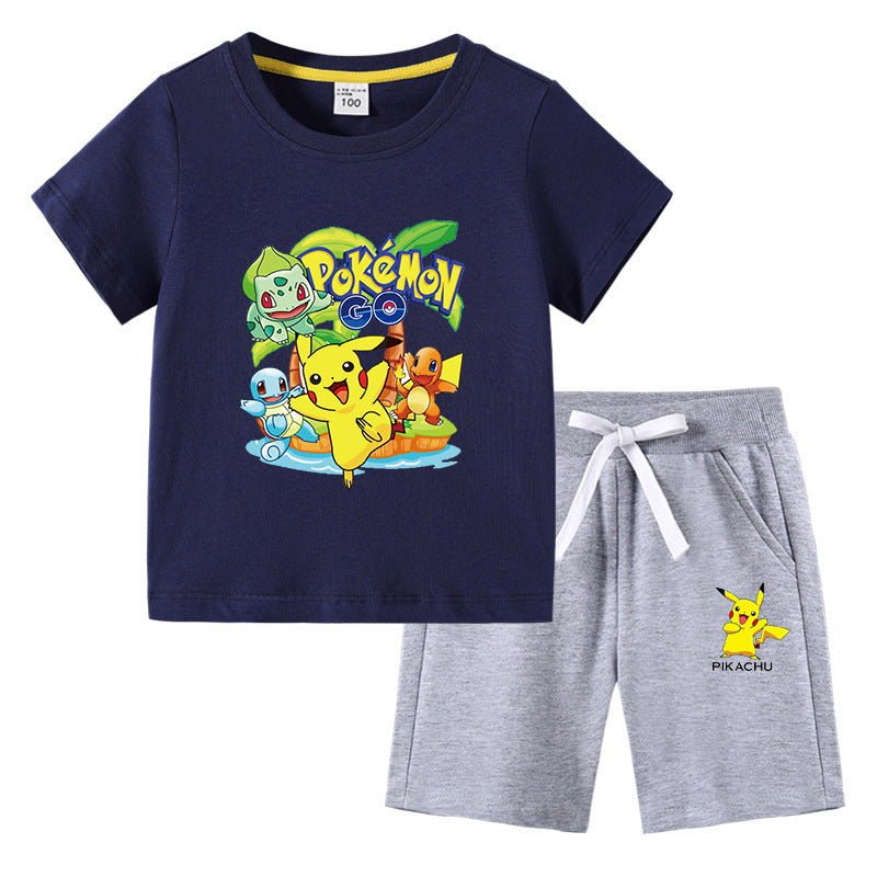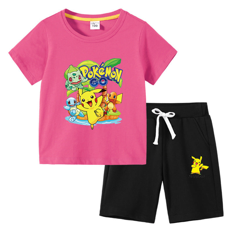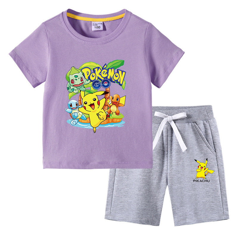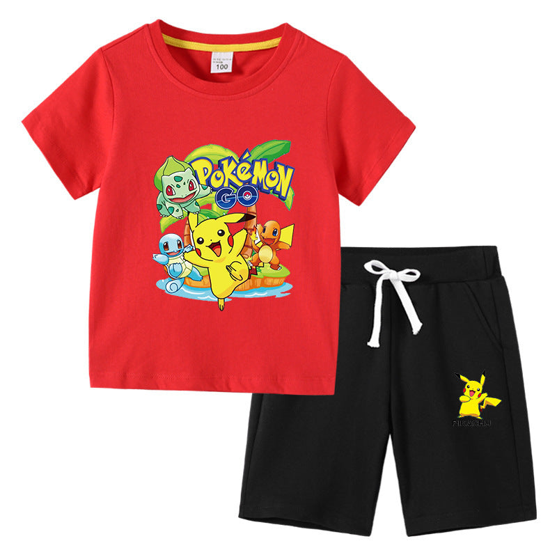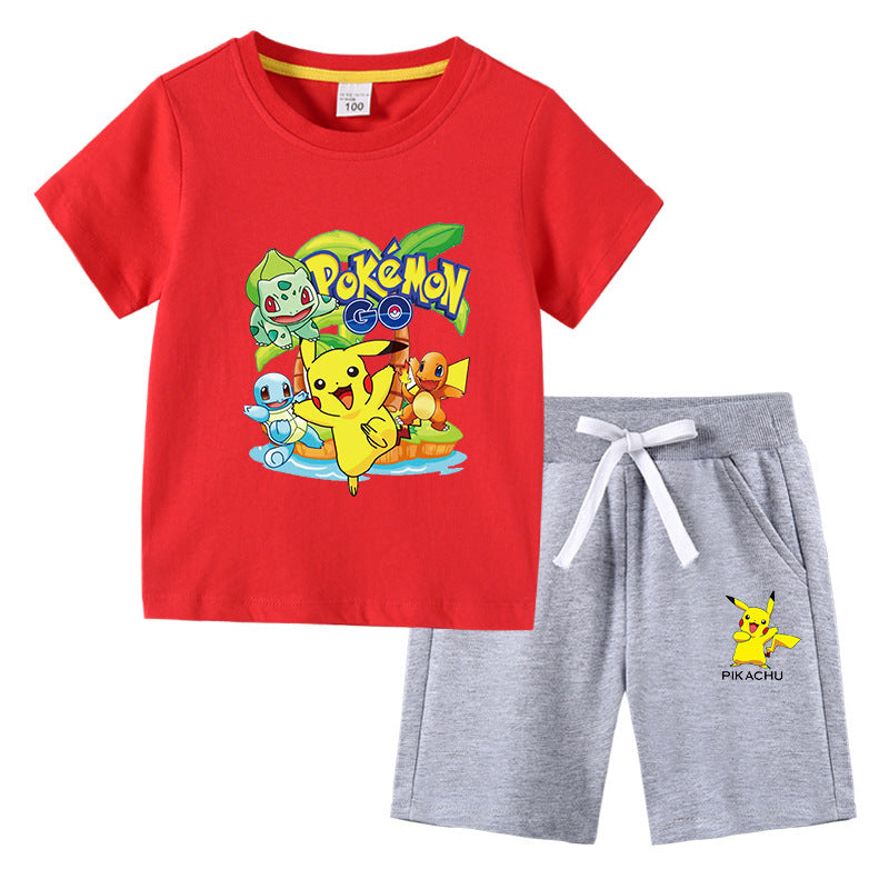 Children Pokemon Pikachu Tshirts & Shorts Cotton Short Sleeve Shorts Two Pieces Neutral