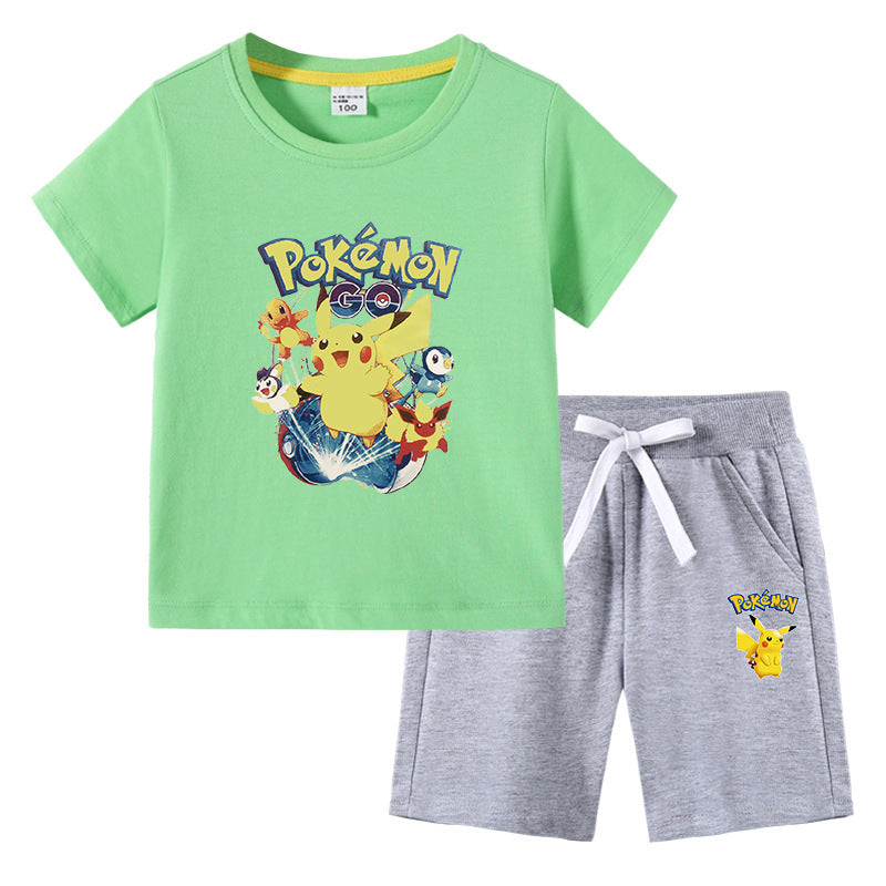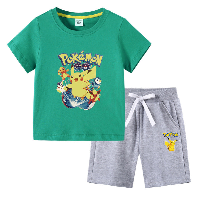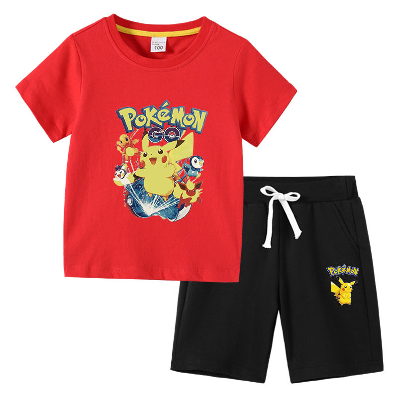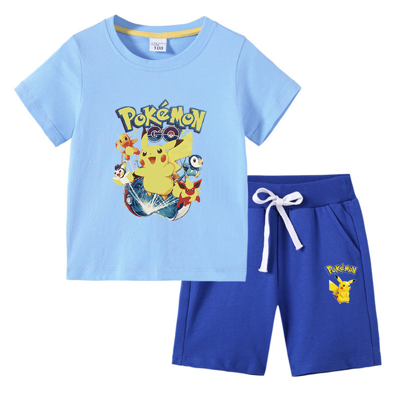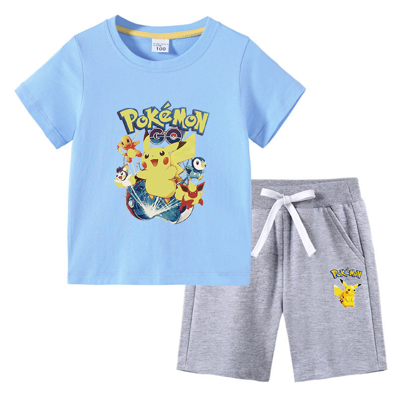 Children Pokemon Pikachu Tshirts & Shorts Cotton Short Sleeve Shorts Two Pieces Neutral