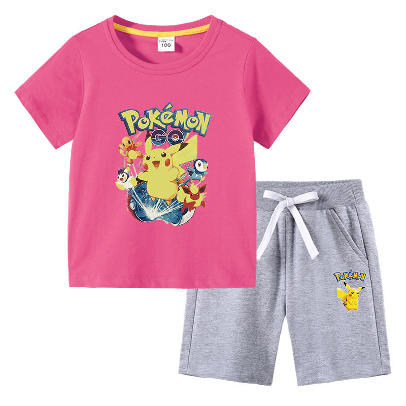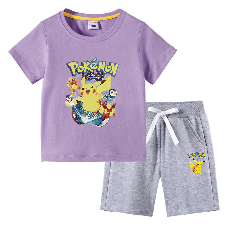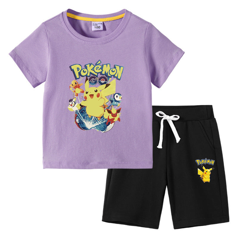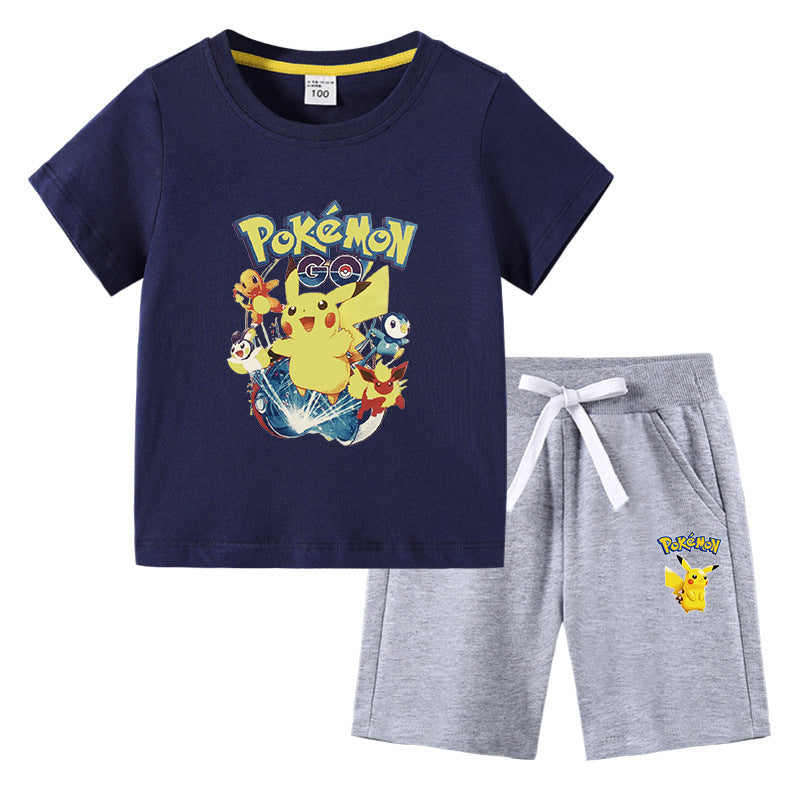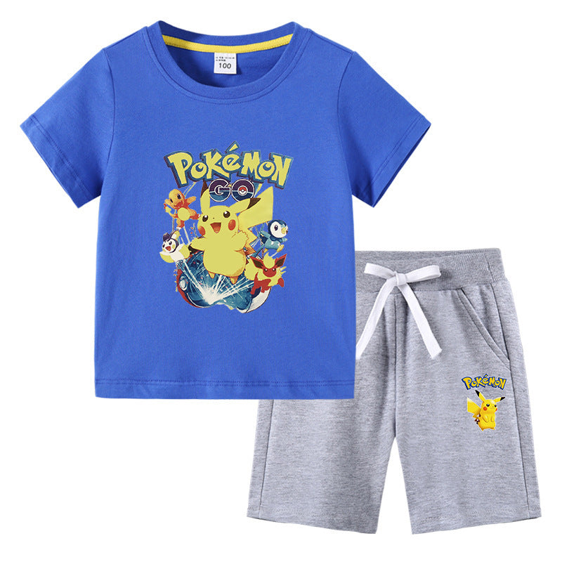 Children Pokemon Pikachu Tshirts & Shorts Cotton Short Sleeve Shorts Two Pieces Neutral