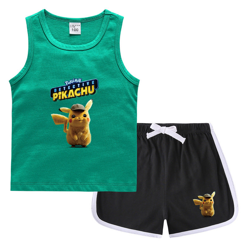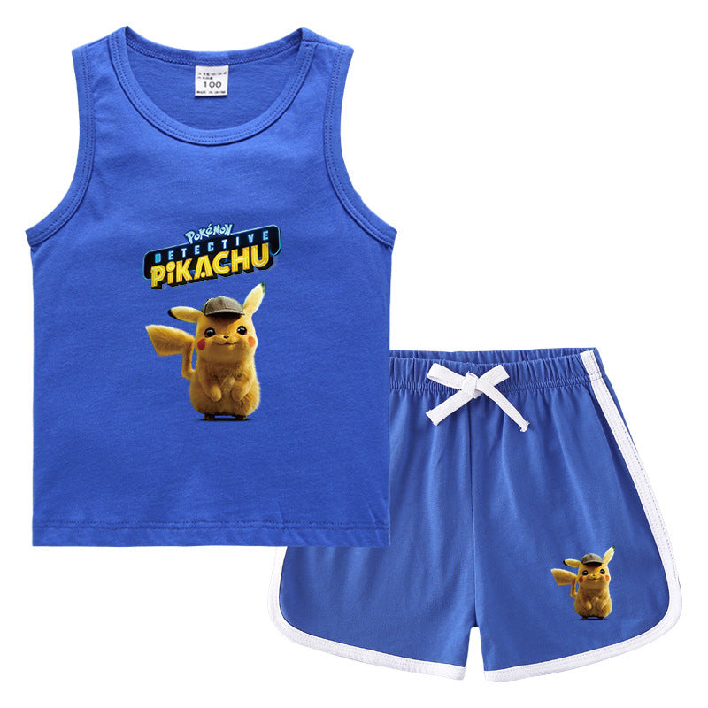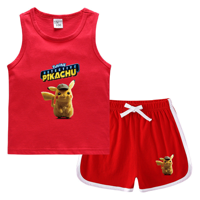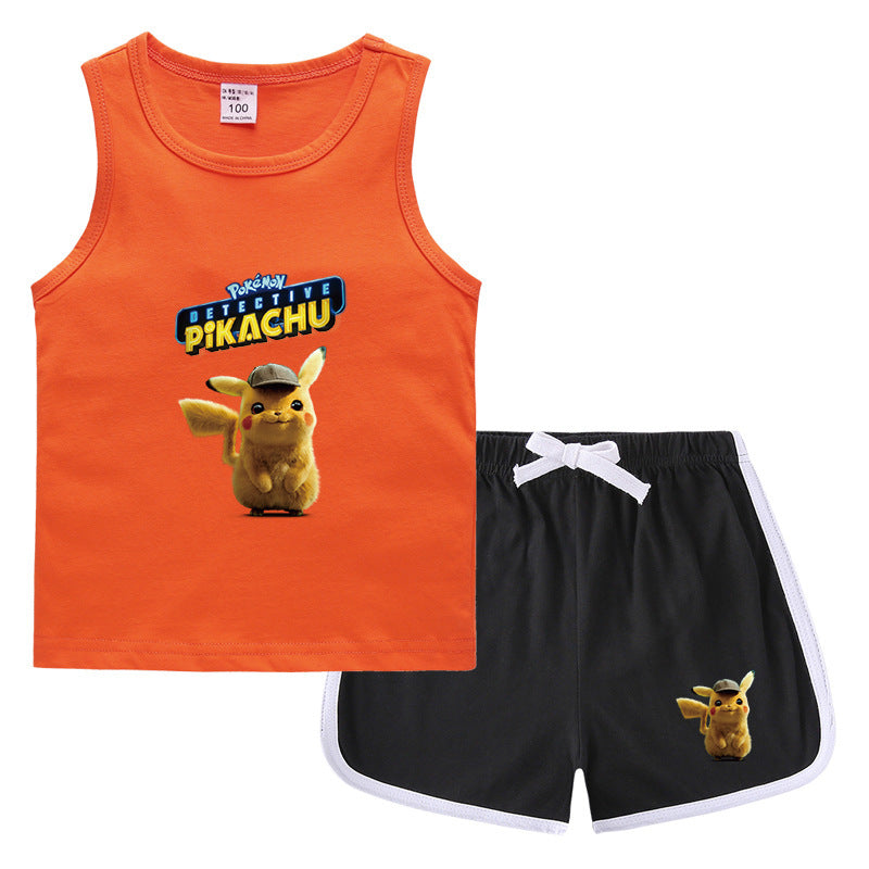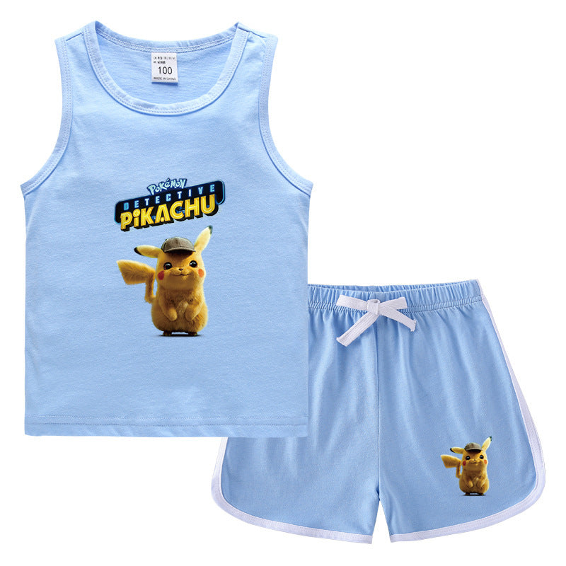 Children Pokemon Pikachu Tshirts & Shorts Casual Sports Sweat-Absorbent Suit Neutral