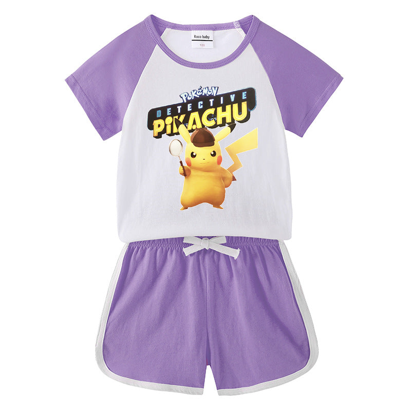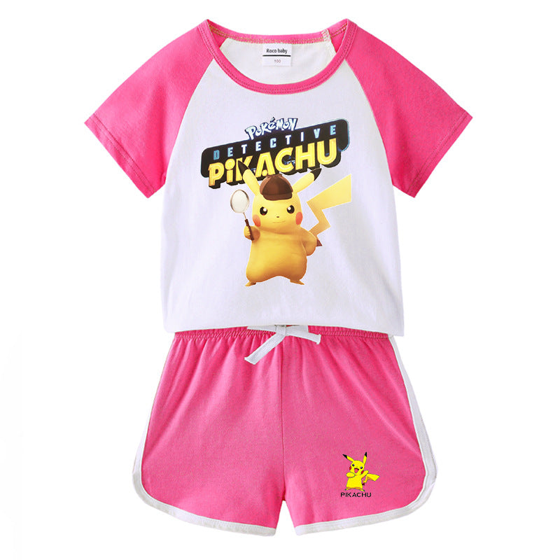 Children Pokemon Pikachu Tshirts & Shorts Short-Sleeved T-shirt Shorts Two-Piece Sports Neutral