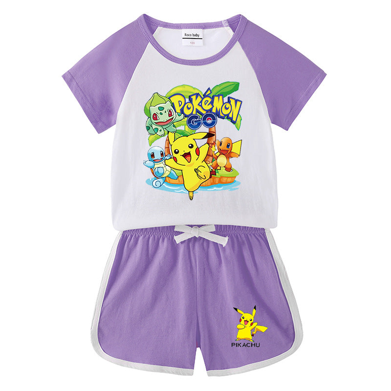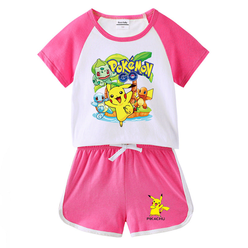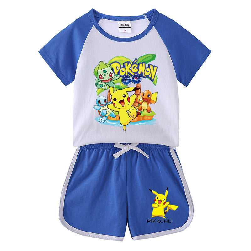 Children Pokemon Pikachu Tshirts & Shorts Short-Sleeved T-shirt Shorts Casual Sports Two-Piece Neutral
