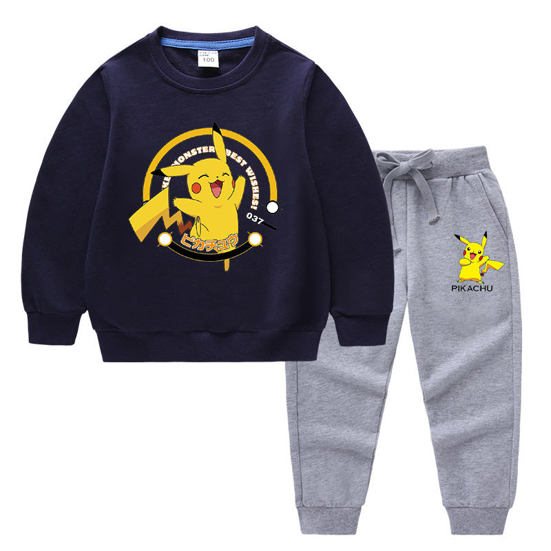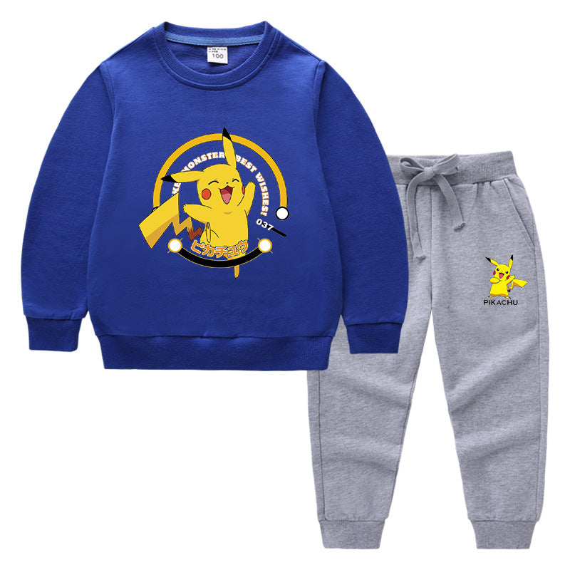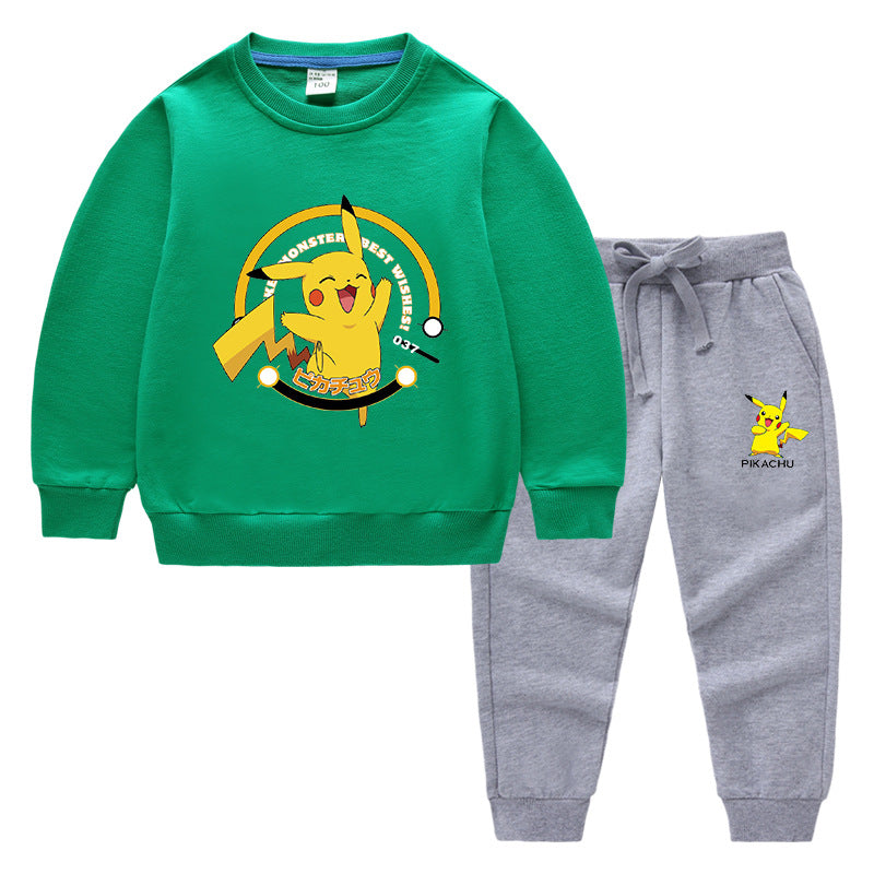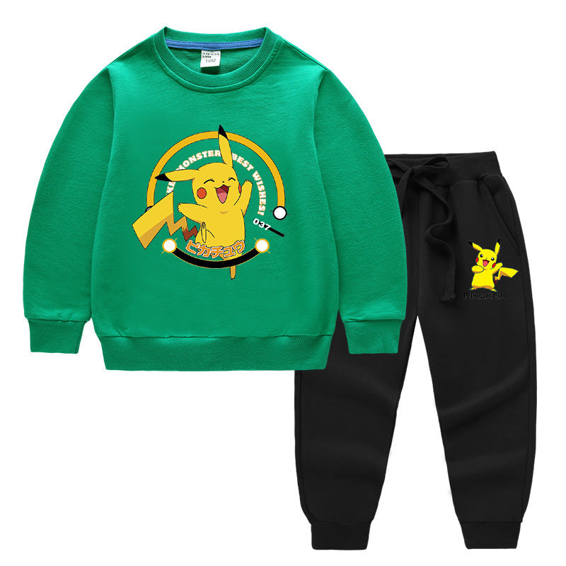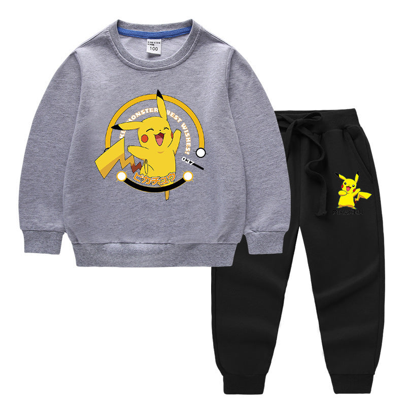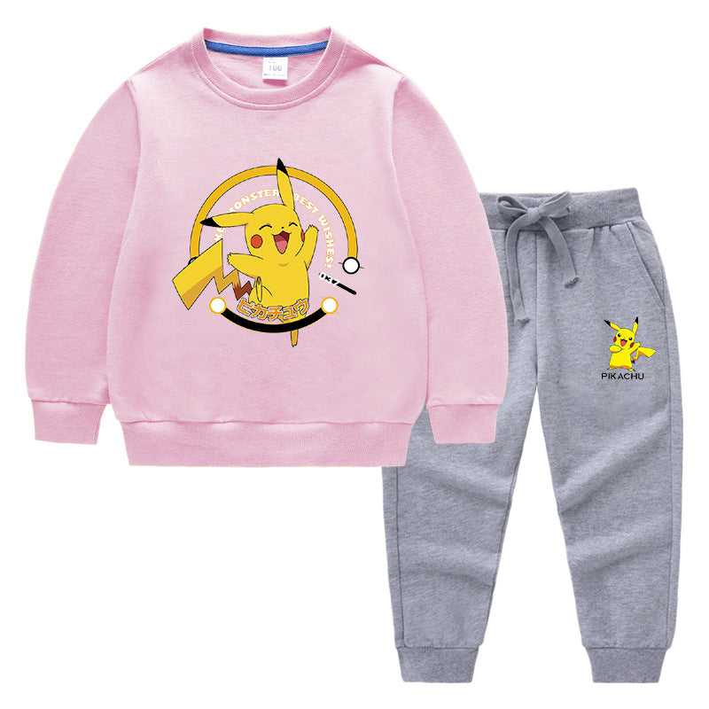 Children Pokemon Pikachu Hoodie & Pant Set Two-Piece Cotton Sweater Set