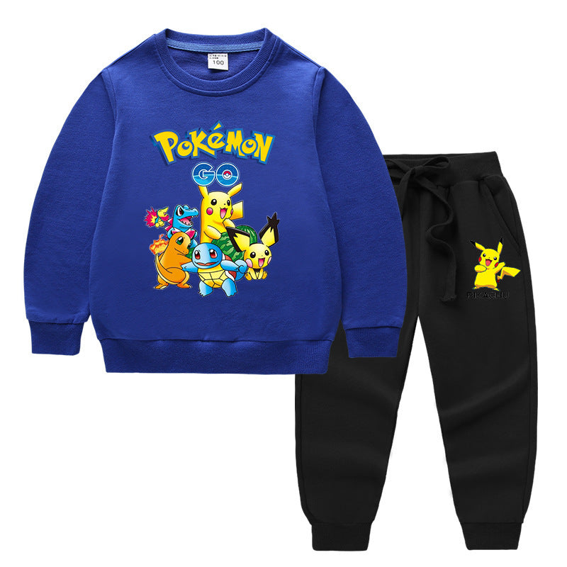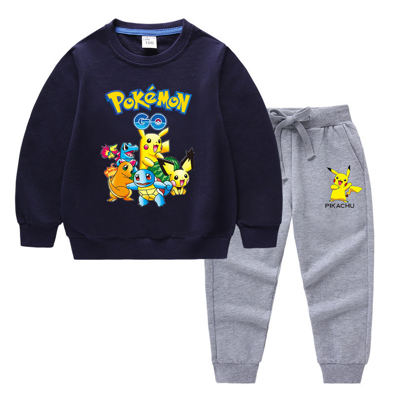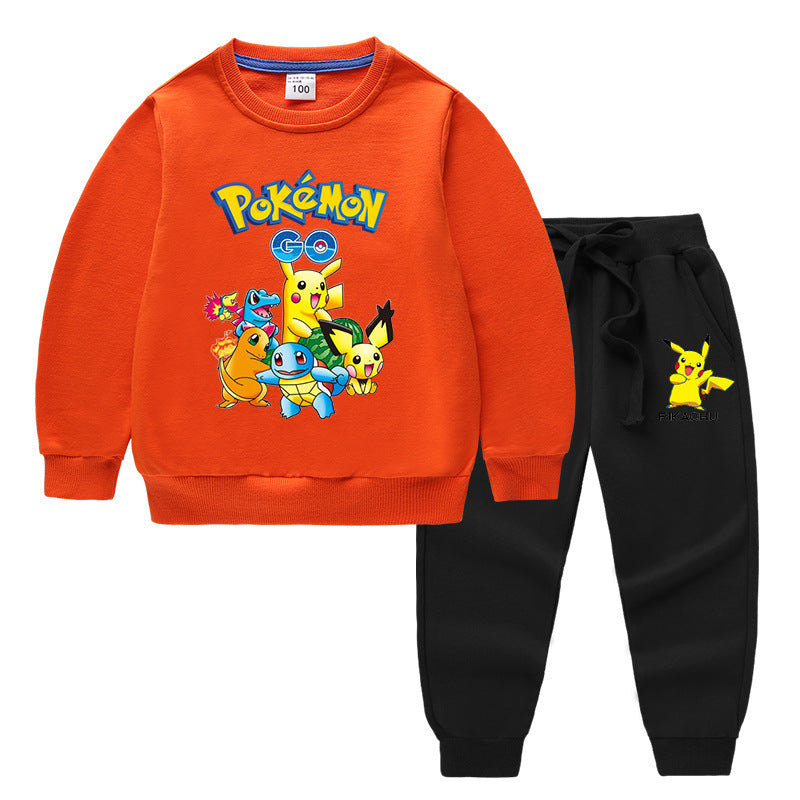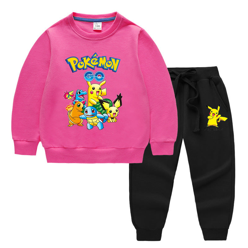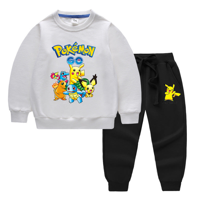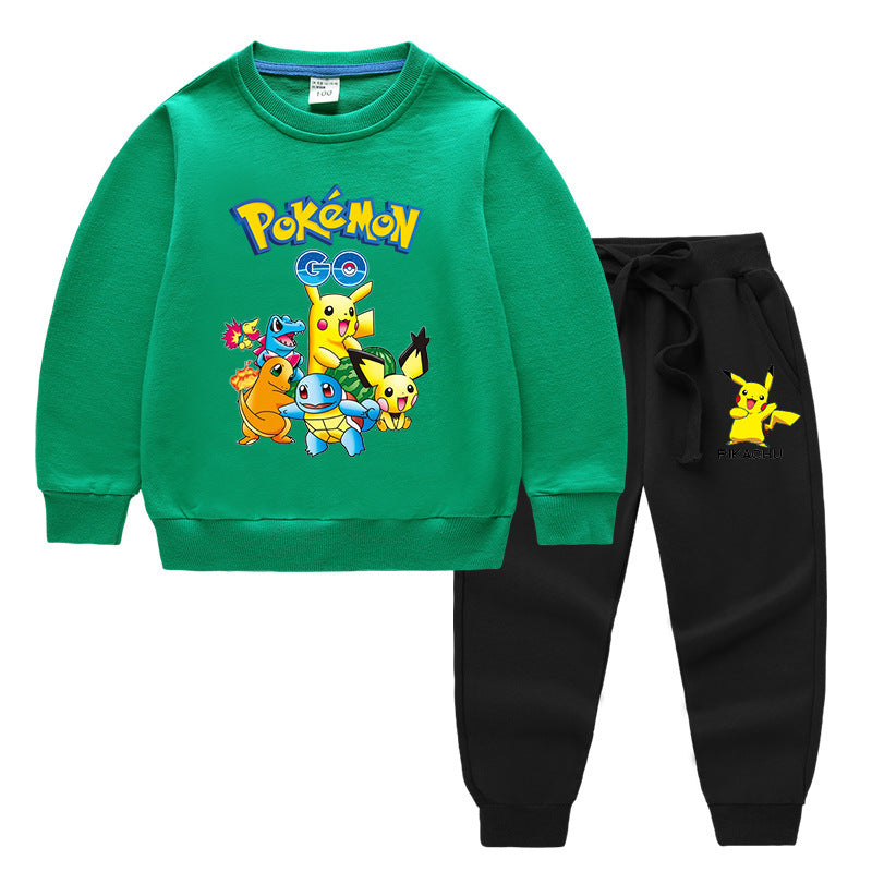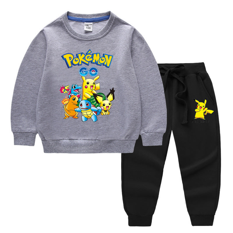 Children Pokemon Pikachu Hoodie & Pant Set Two-Piece Solid Color Cotton Sweater Set