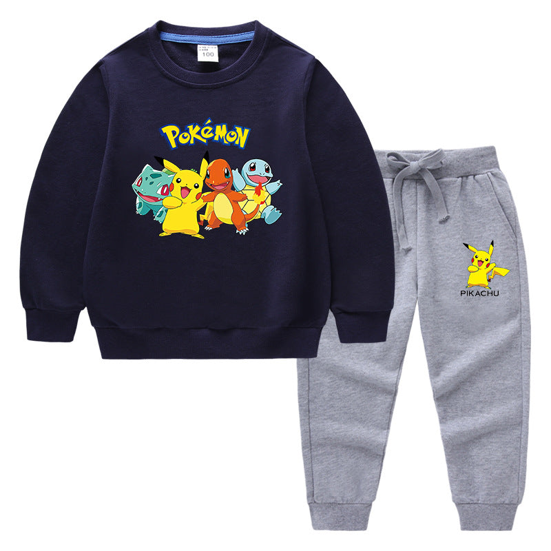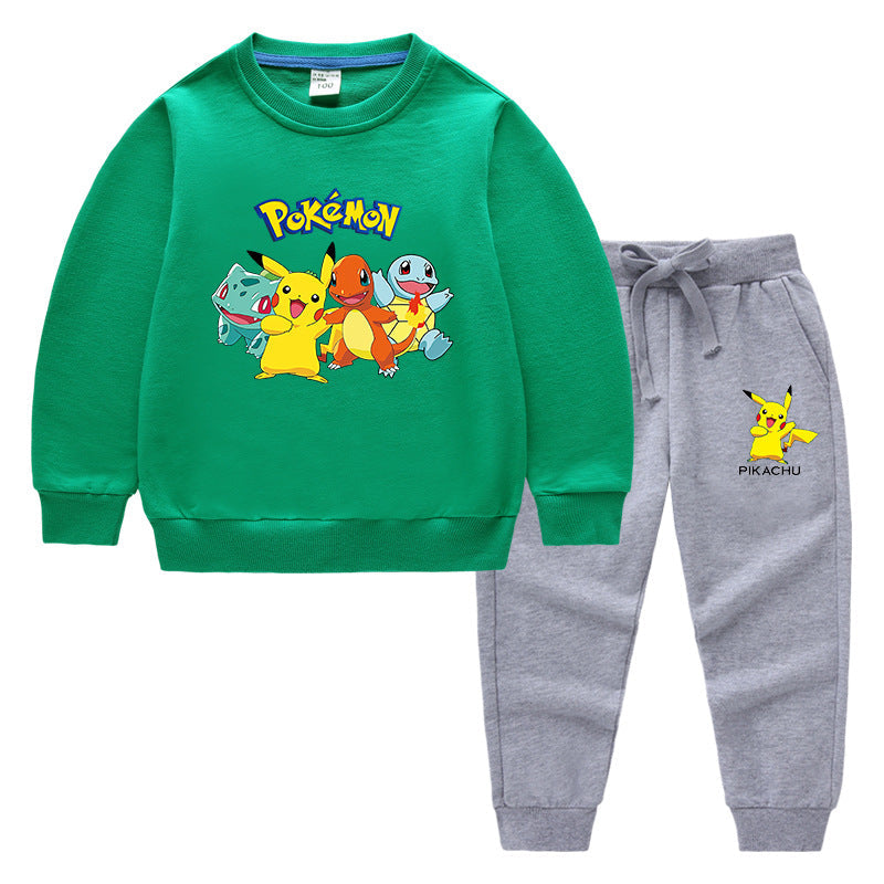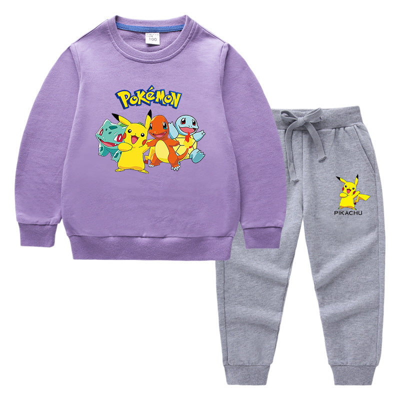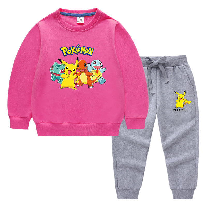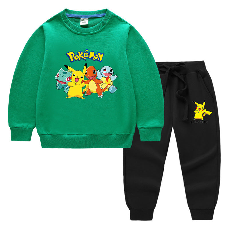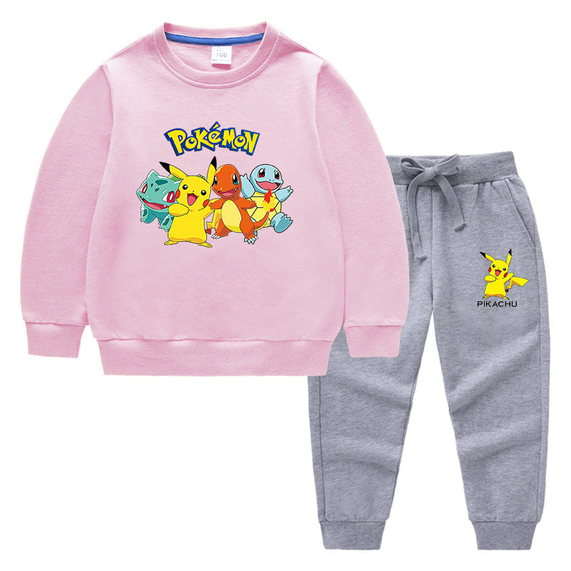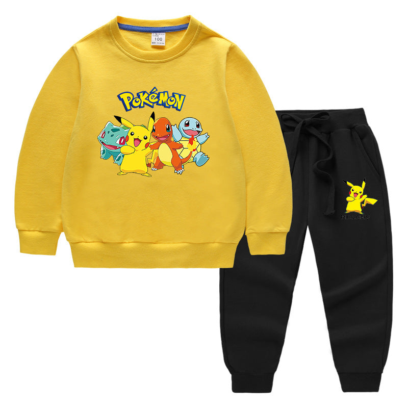 Children Pokemon Pikachu Hoodie & Pant Set Pure Color Cotton Quality Sweatshirt Set Trousers