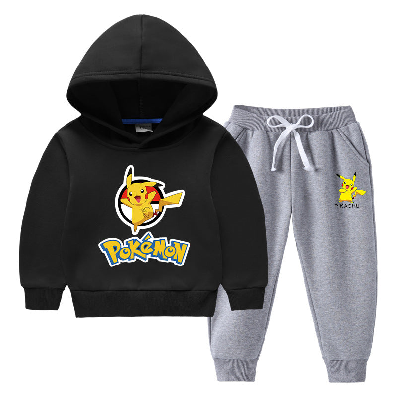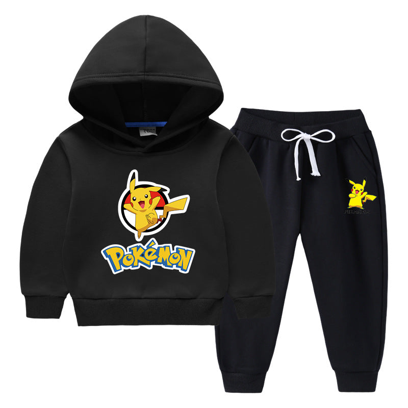 Children Pokemon Pikachu Hoodie & Pant Set Fleece Lined Padded Warm Keeping Winter Clothes