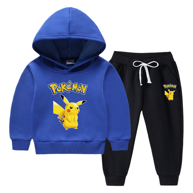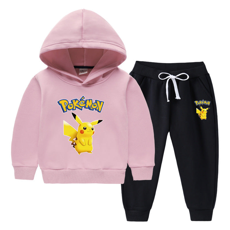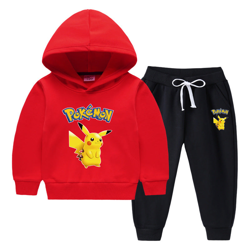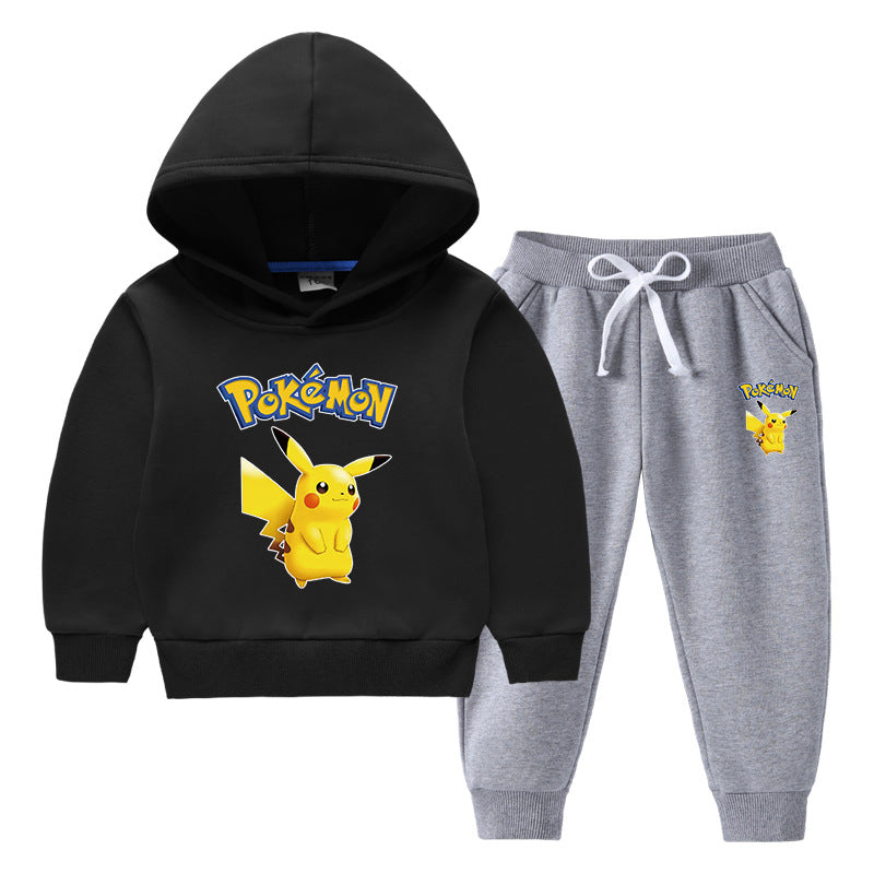 Children Pokemon Pikachu Hoodie & Pant Set Fleece Lined Padded Warm Keeping Winter Clothes Two Pieces
