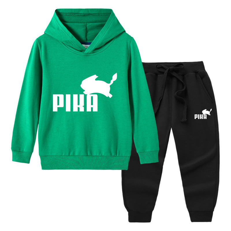 Children Pokemon Pikachu Hoodie & Pant Set Hooded Sweater Trousers Two-Piece Set Baby Cotton