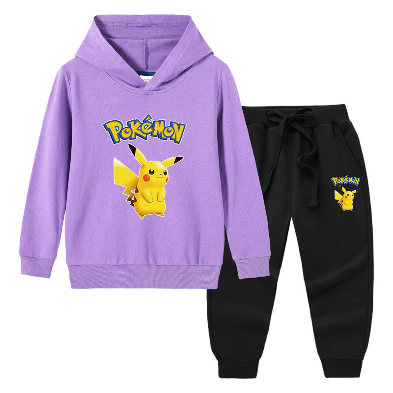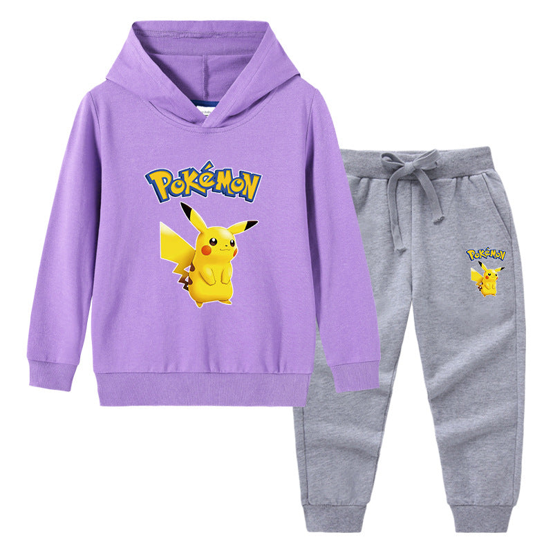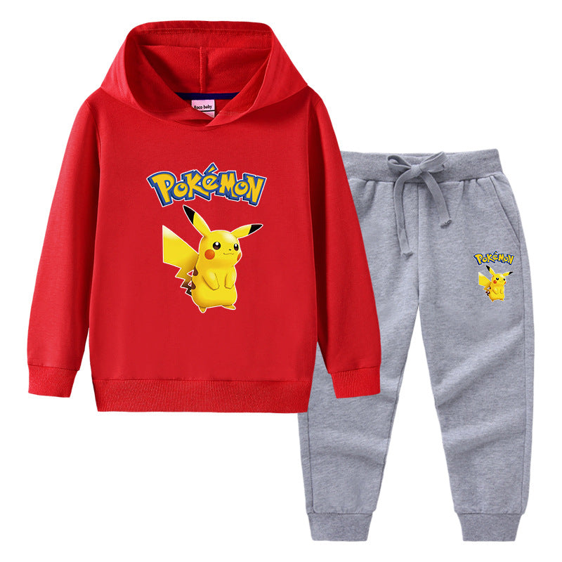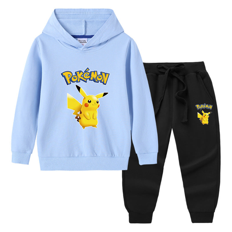 Children Pokemon Pikachu Hoodie & Pant Set Sweater Trousers Two-Piece Baby Cotton Suit
