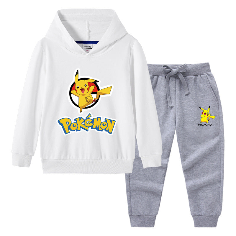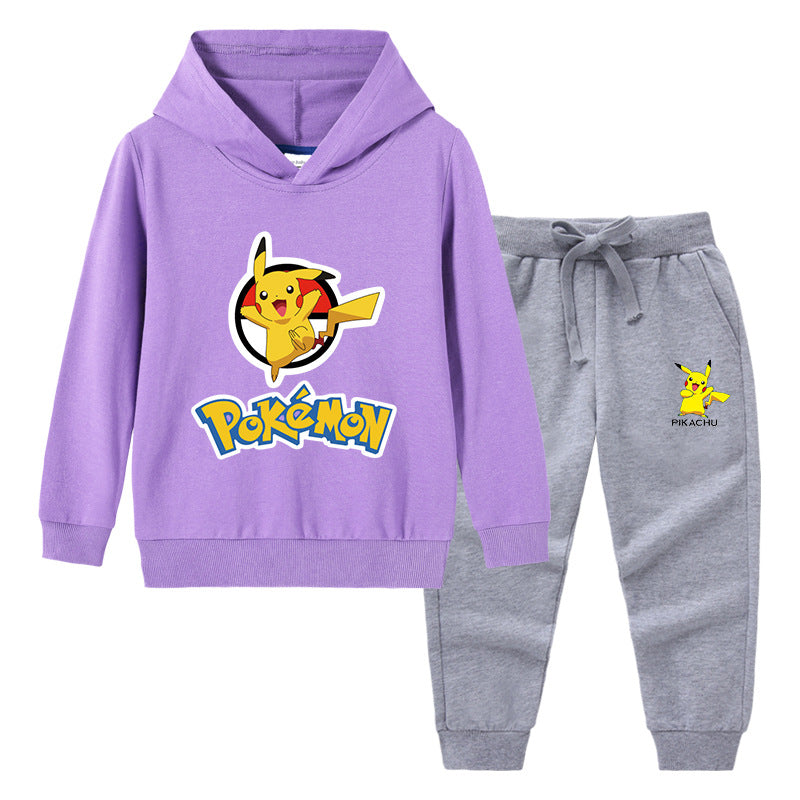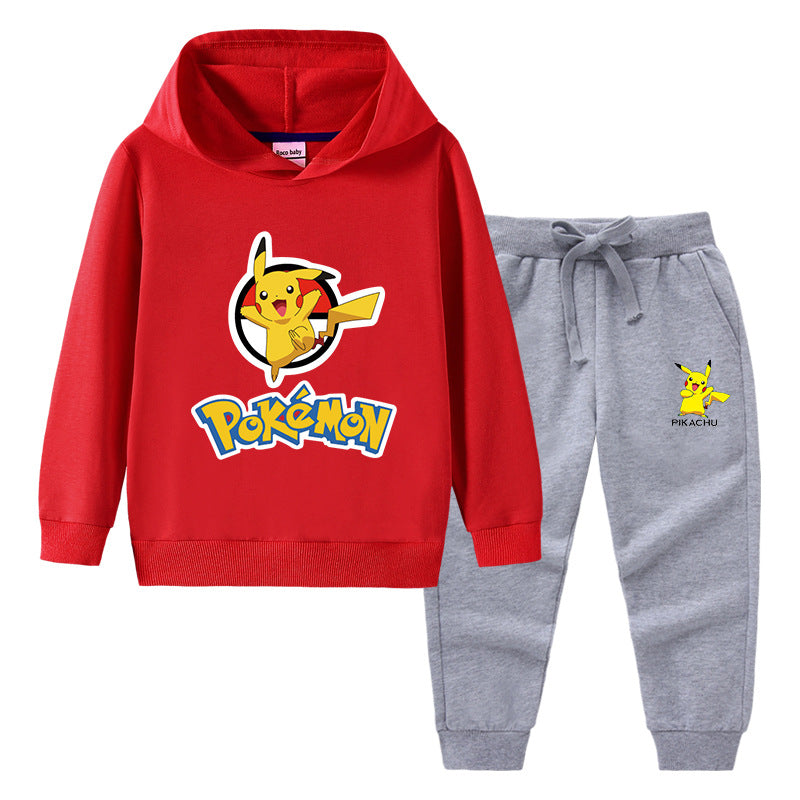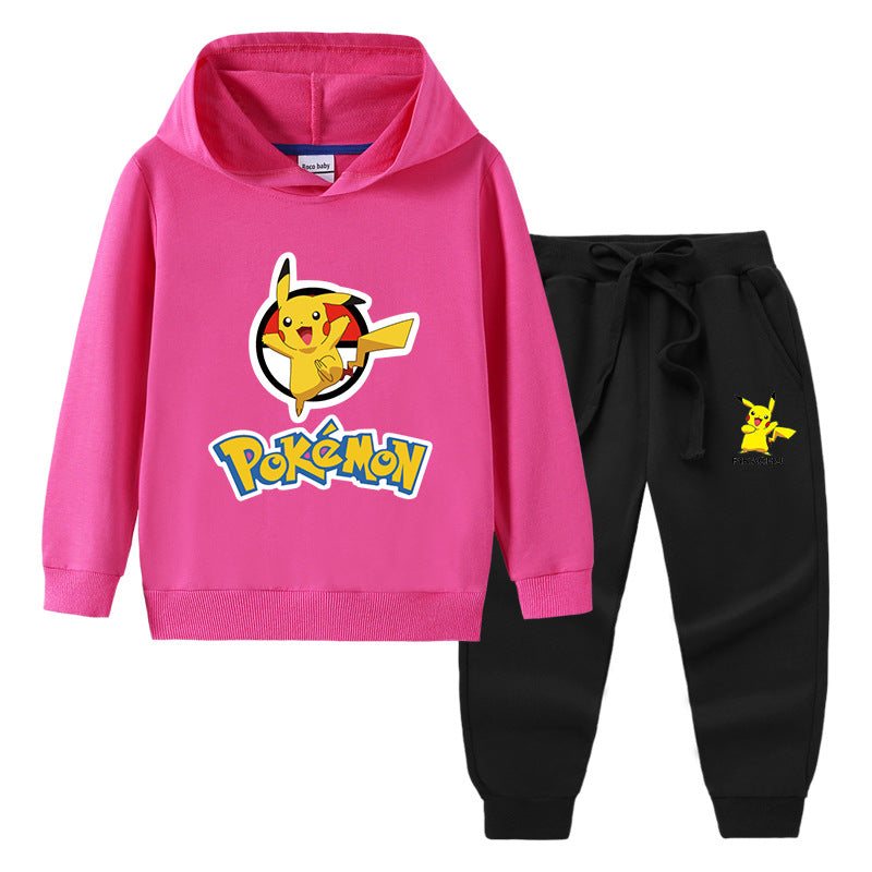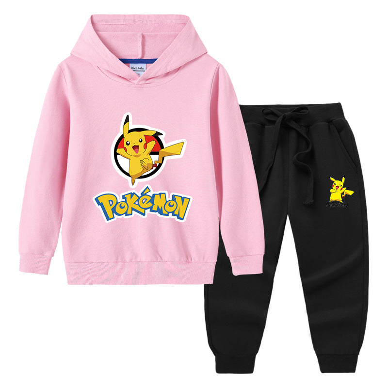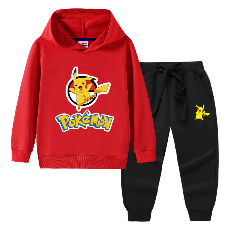 Children Pokemon Pikachu Hoodie & Pant Set Hooded Sweater Trousers Two-Piece Baby Cotton Sweater Set