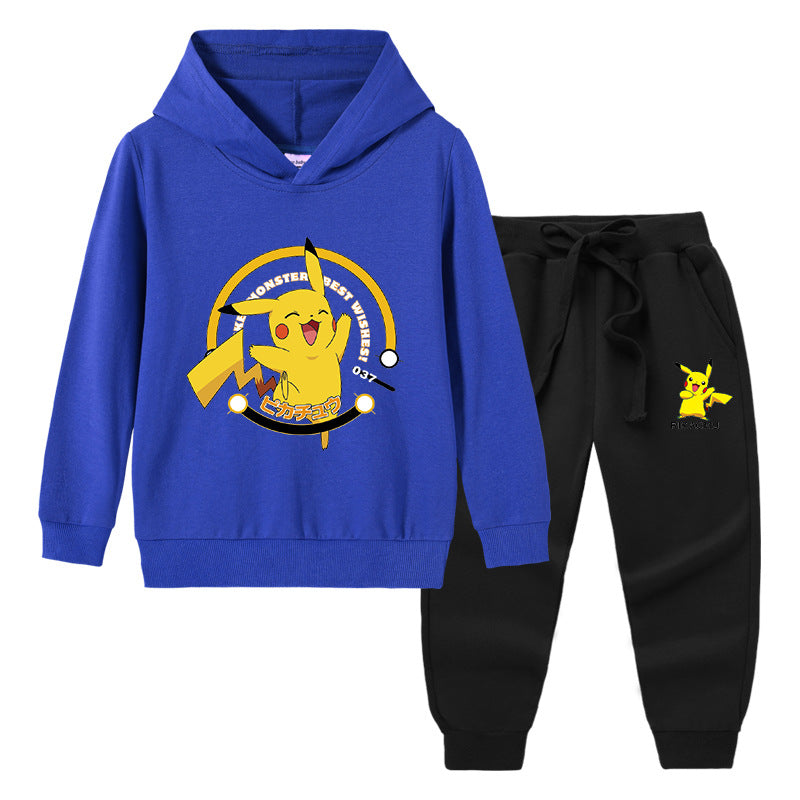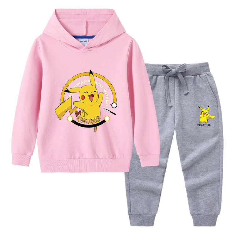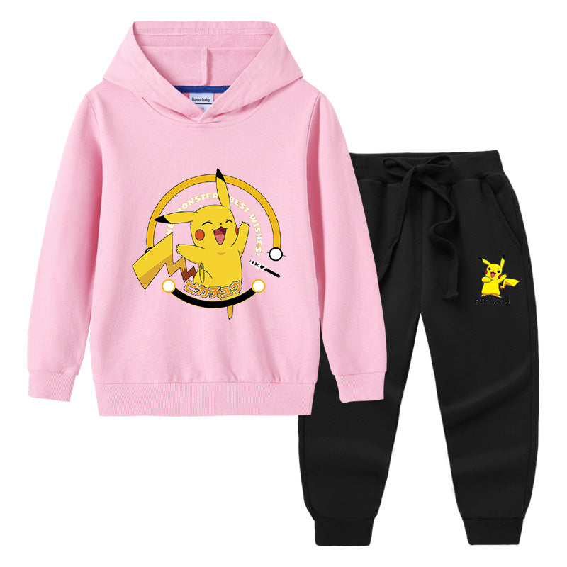 Children Pokemon Pikachu Hoodie & Pant Set Hooded Sweater Trousers Two-Piece Baby Cotton Sweater Set