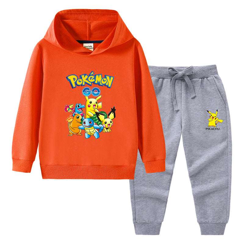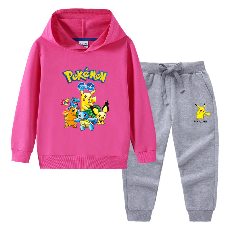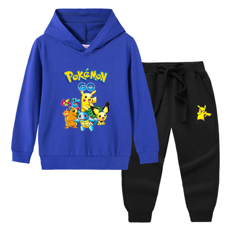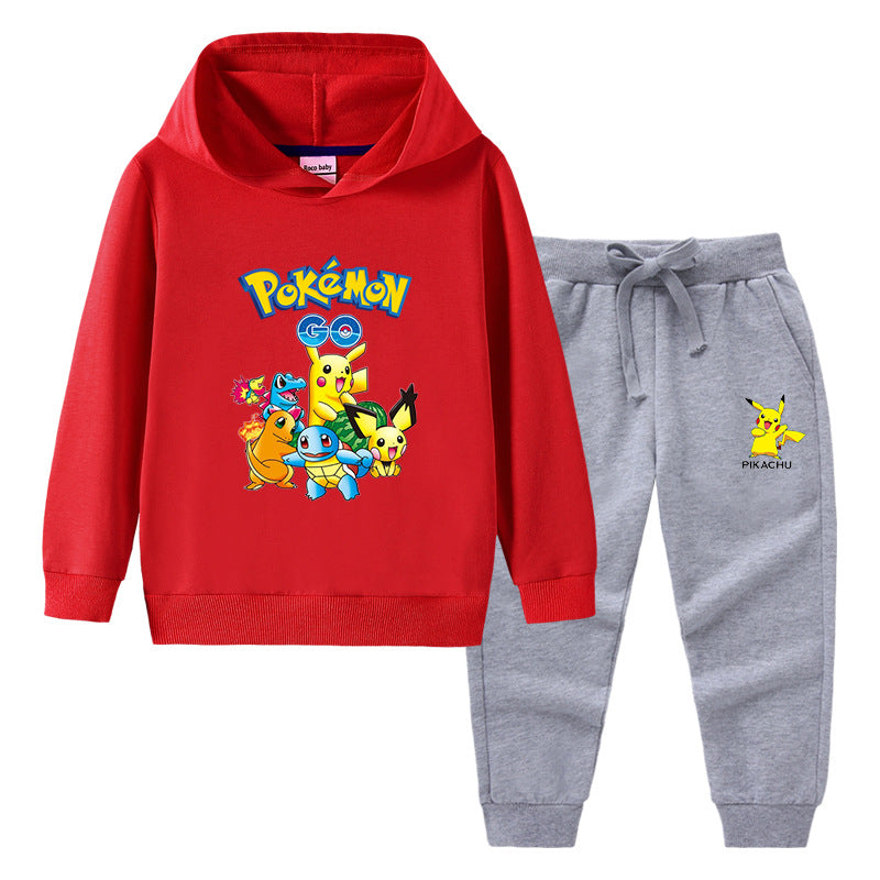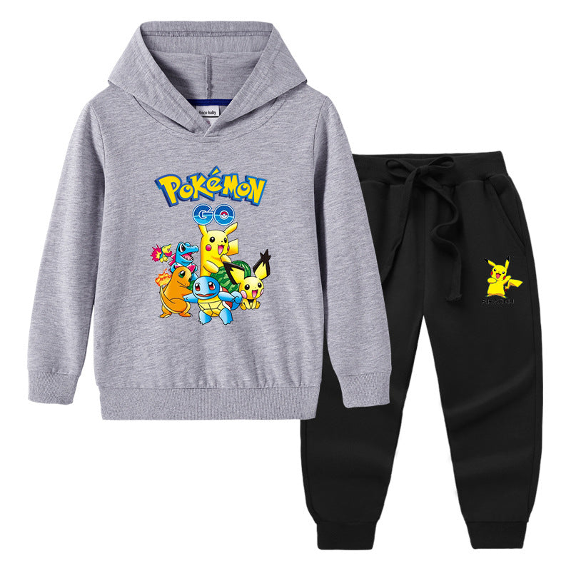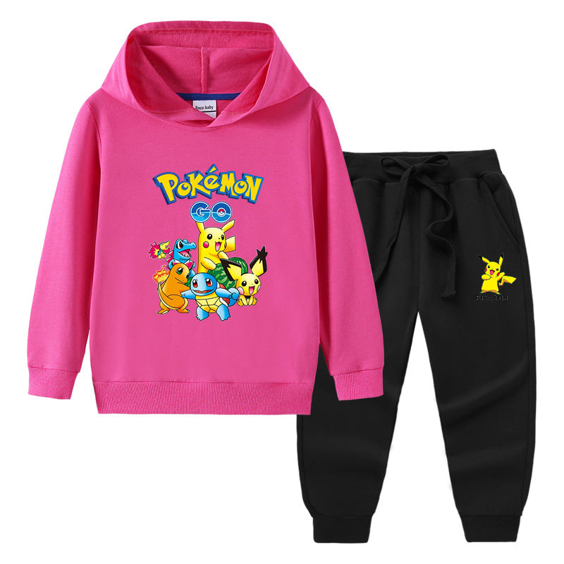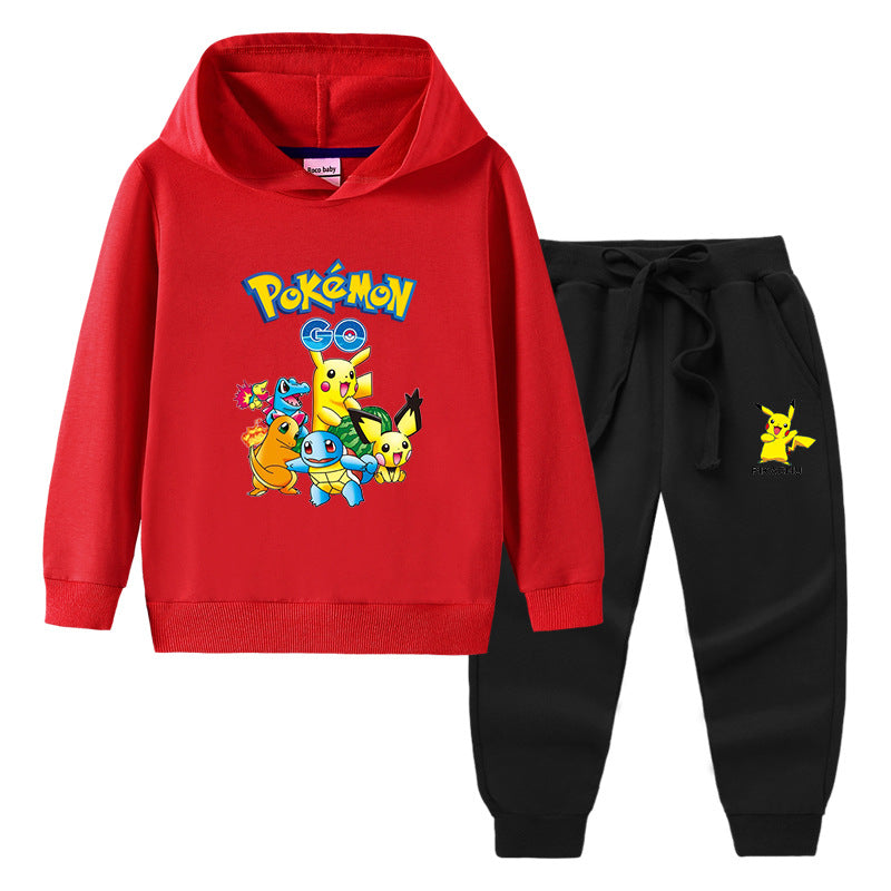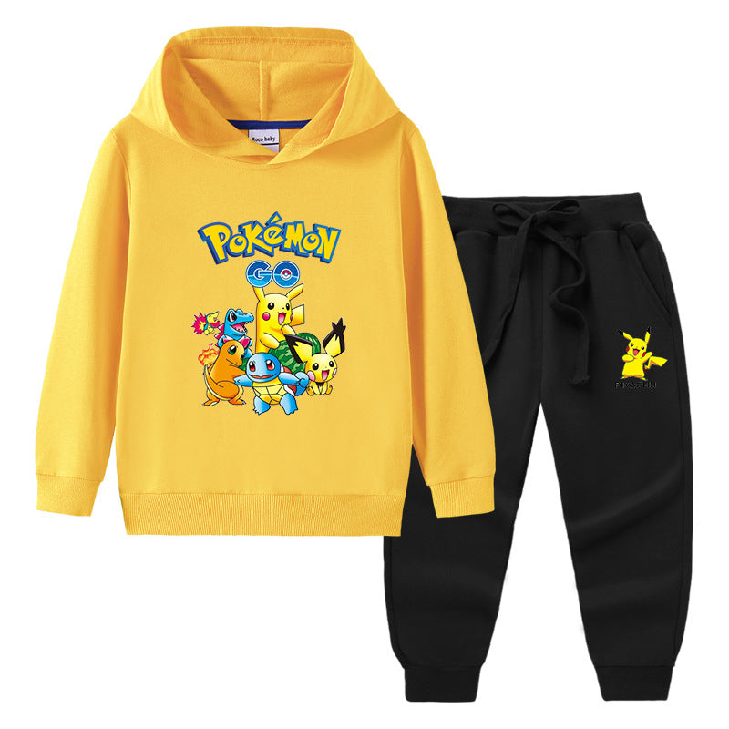 Children Pokemon Pikachu Hoodie & Pant Set Hooded Sweater Trousers Two-Piece Baby Cotton Sweater Suit