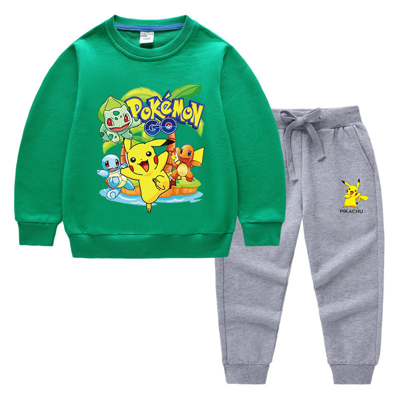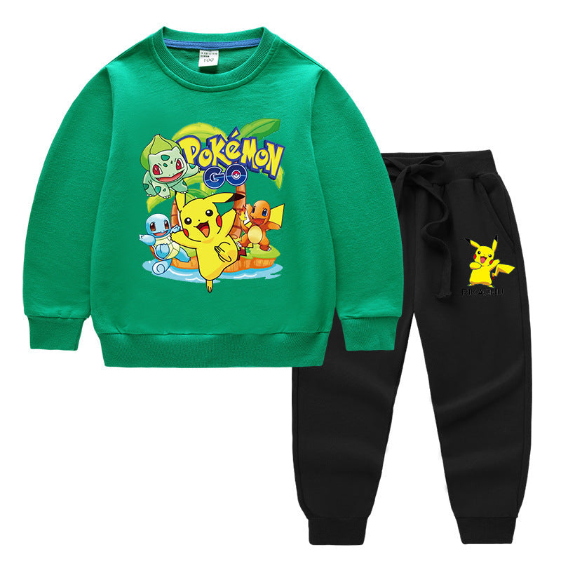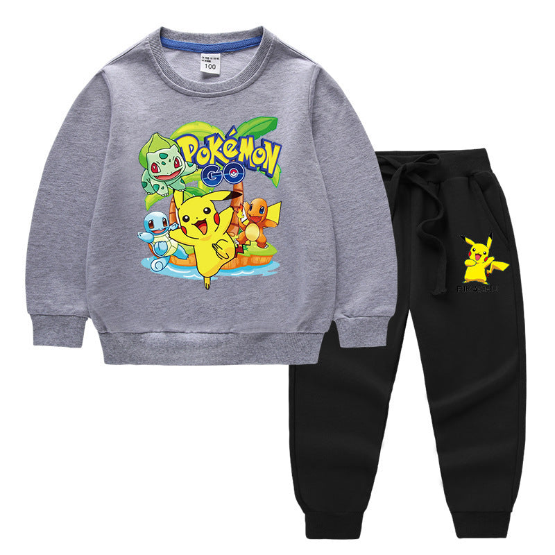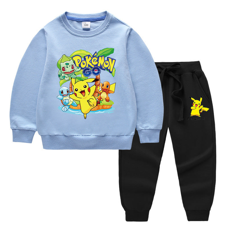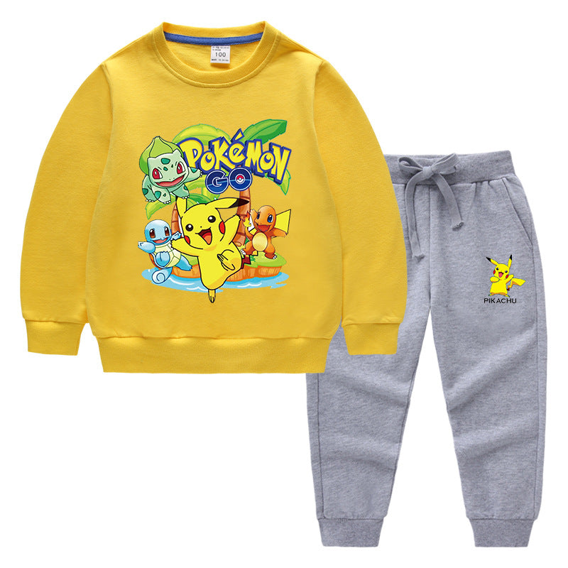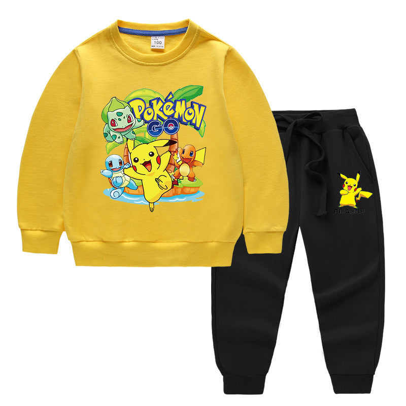 Children Pokemon Pikachu Hoodie & Pant Set Two-Piece Baby Cotton Sweater Set