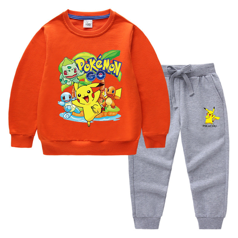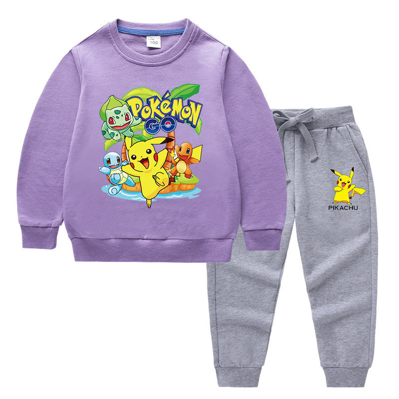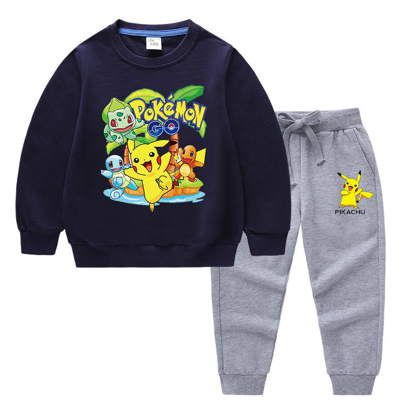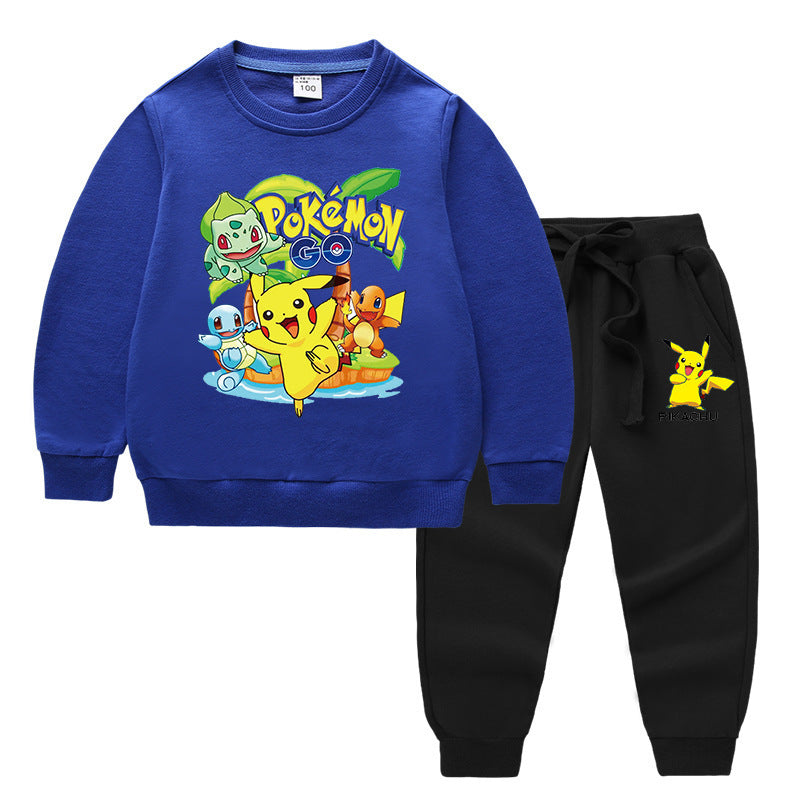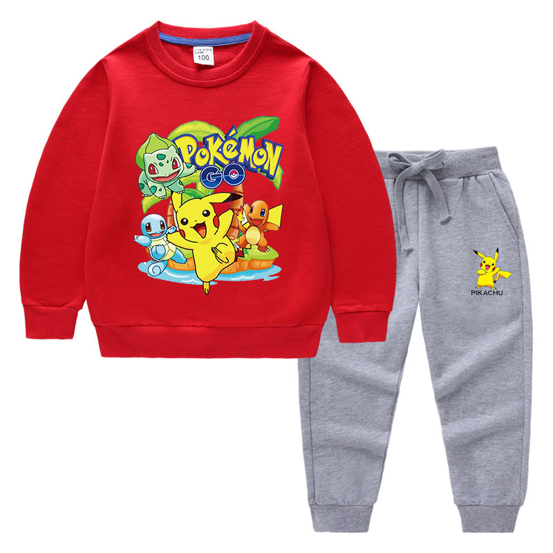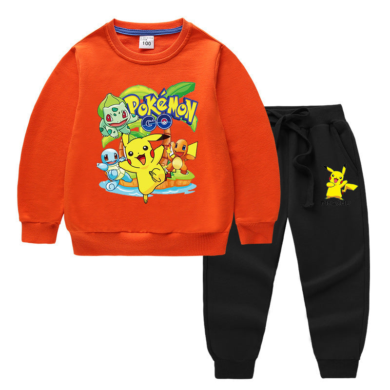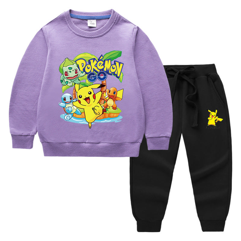 Children Pokemon Pikachu Hoodie & Pant Set Two-Piece Baby Cotton Sweater Set