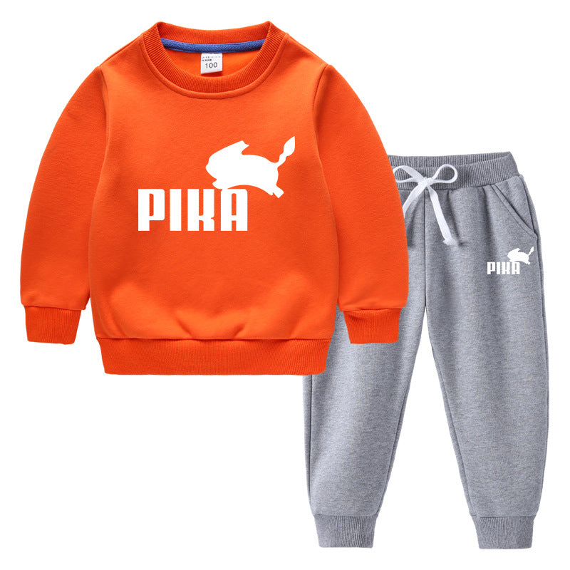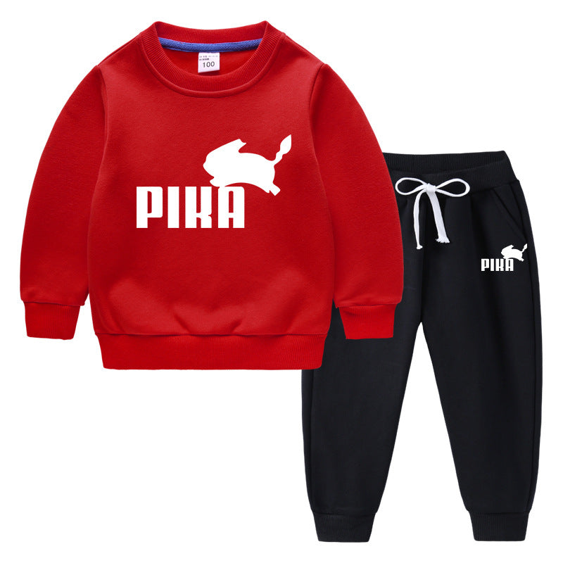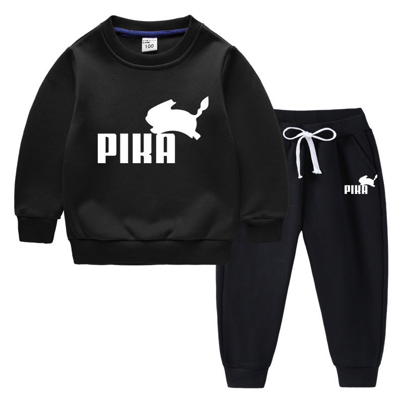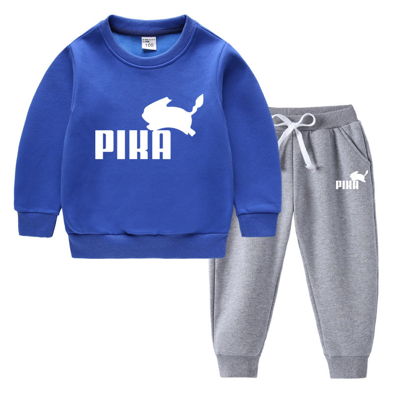 Children Pokemon Pikachu Hoodie & Pant Set Fleece Lined Padded Warm Keeping Winter Clothes Sweatershirt Suit