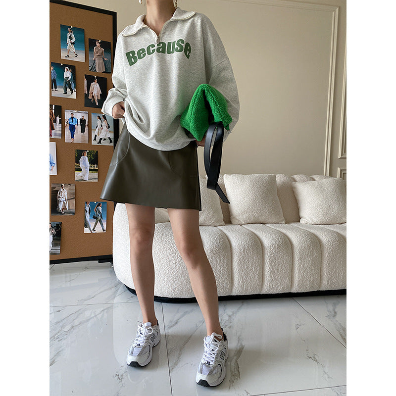 Diana Harvard Sweatshirt Retro Polo Collar Loose Letter Sweater
