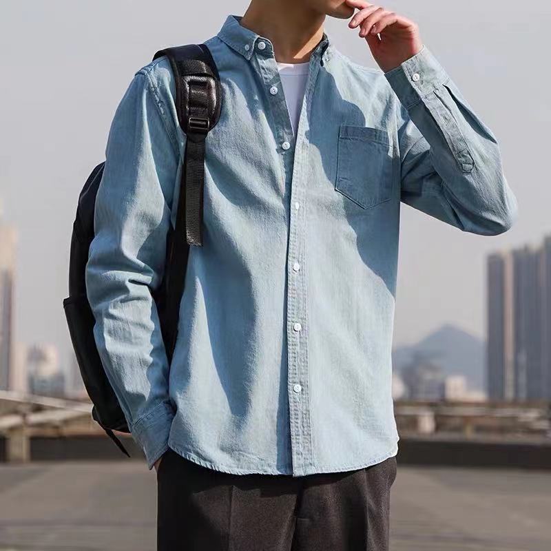 Denim Shirts Men's Long Sleeve Loose Casual Spring and Autumn Coat