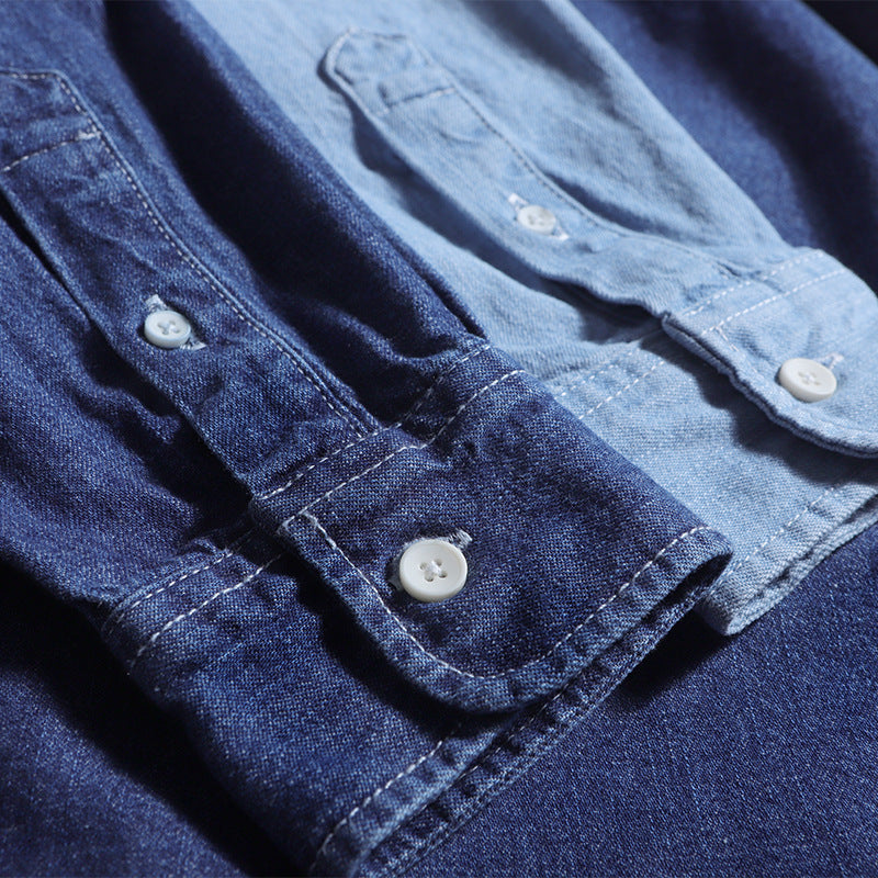 Denim Shirts Pure Cotton Water Light Blue Denim Shirt Men's Long Sleeve Loose Casual